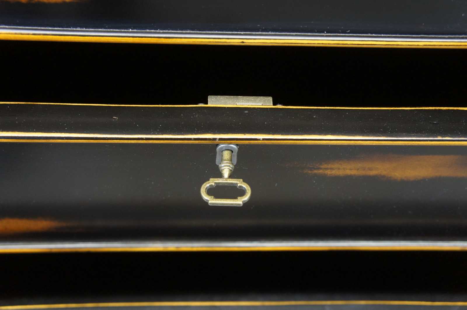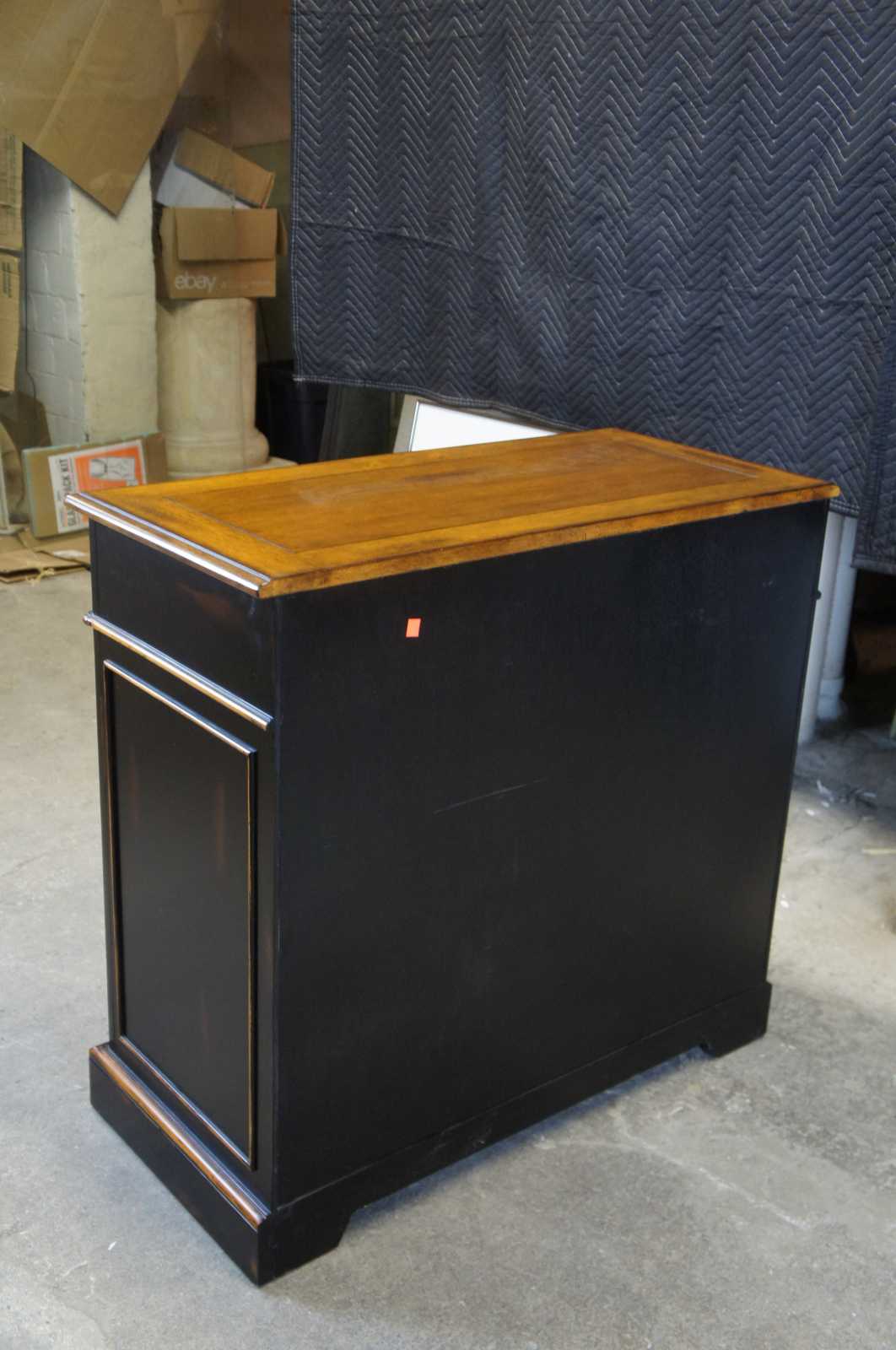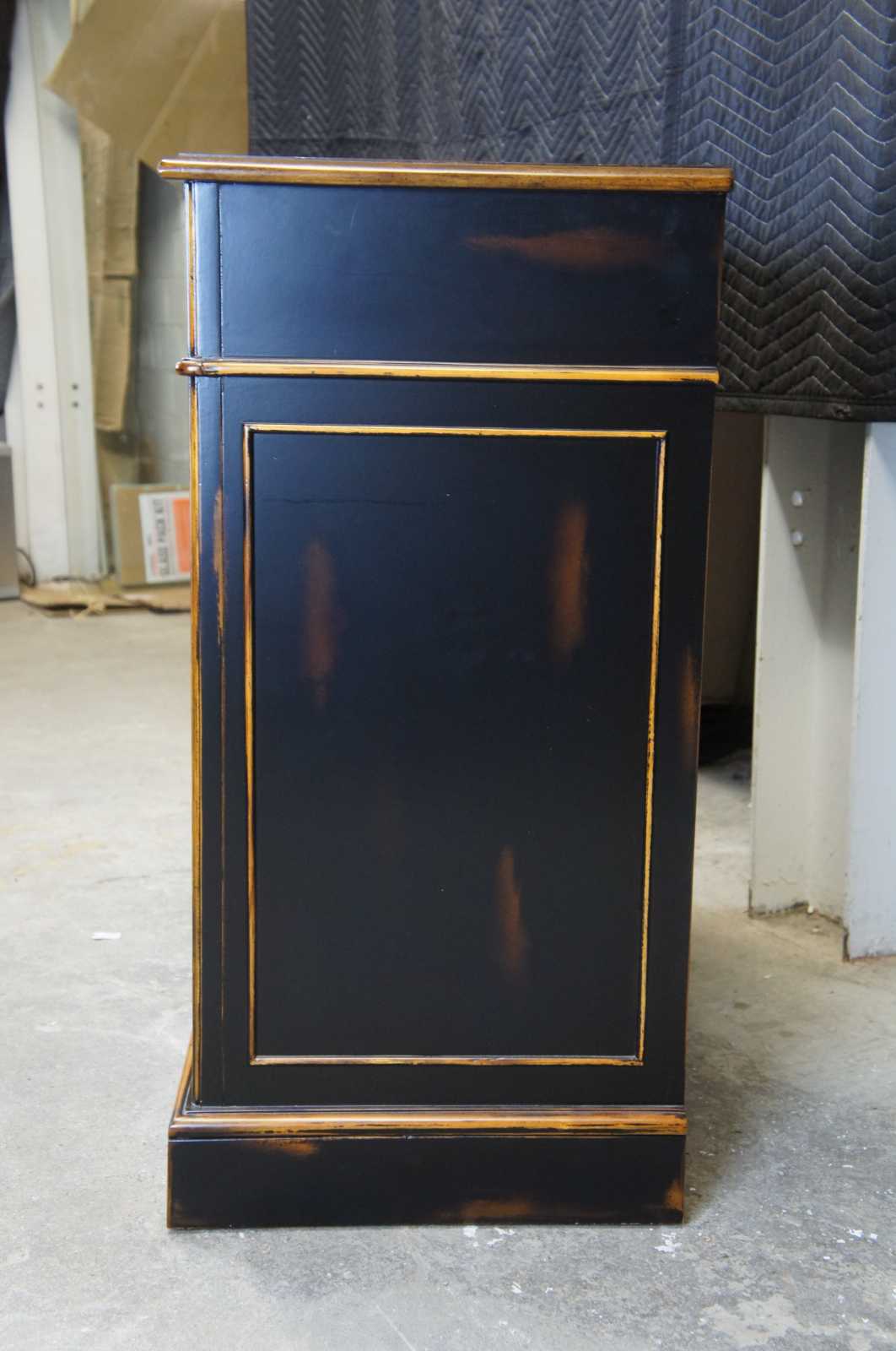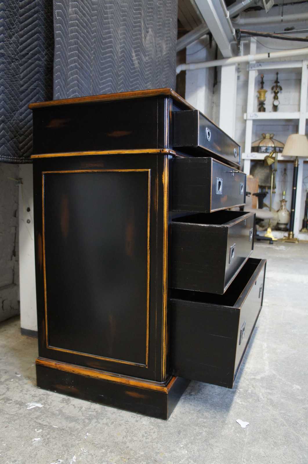 A naturally distressed dresser by Accents & Beyond. Made from birch and finished in black with a rubbed finish. Features trimmed side panneling, locks and a key. Made in North Carolina.