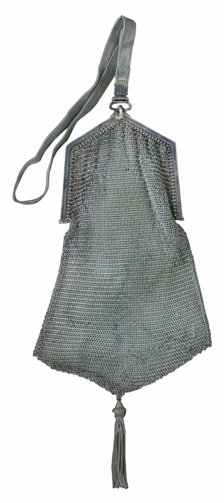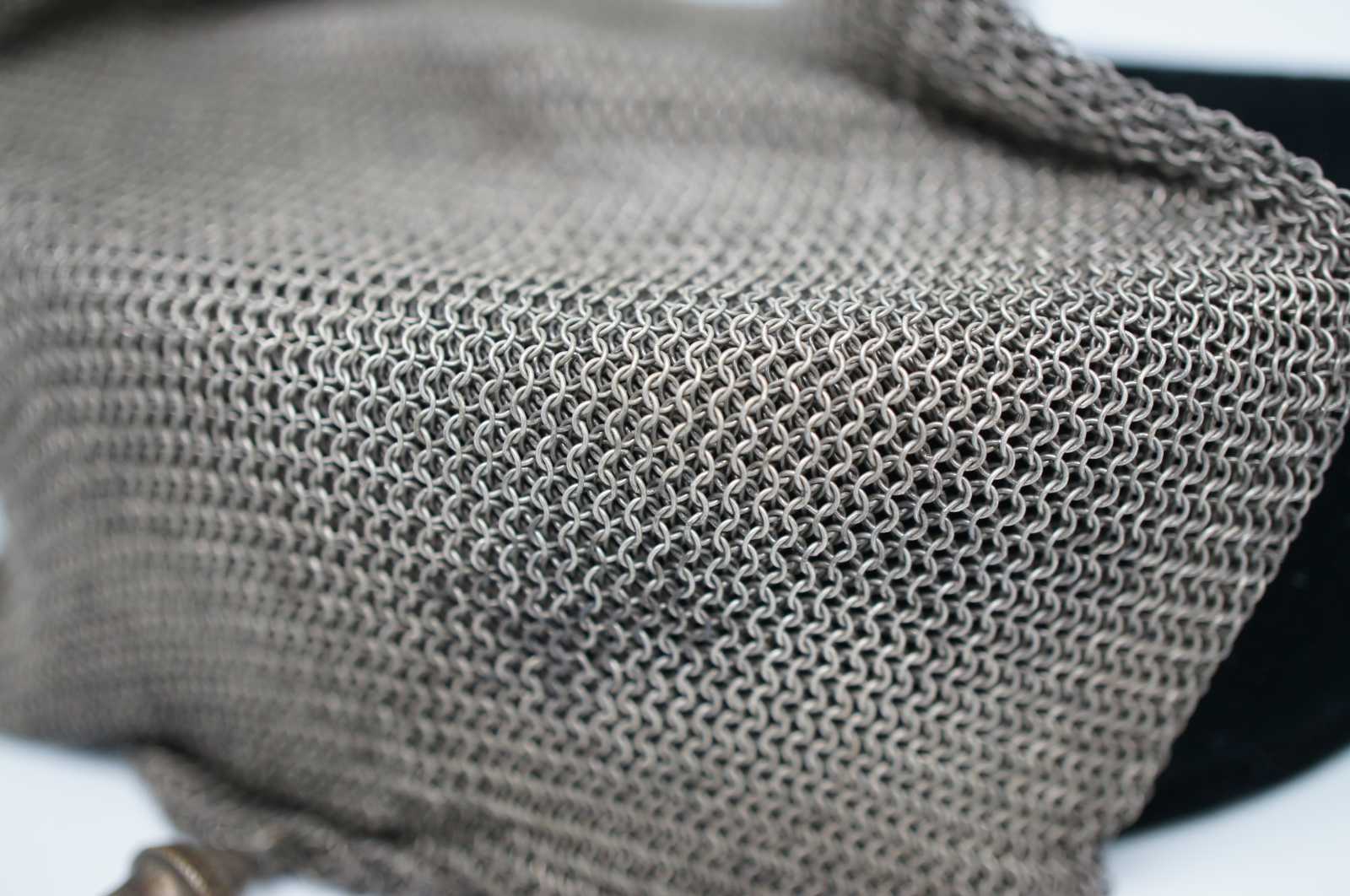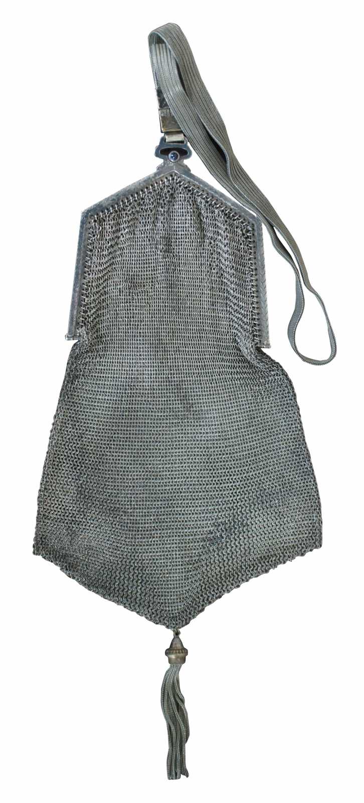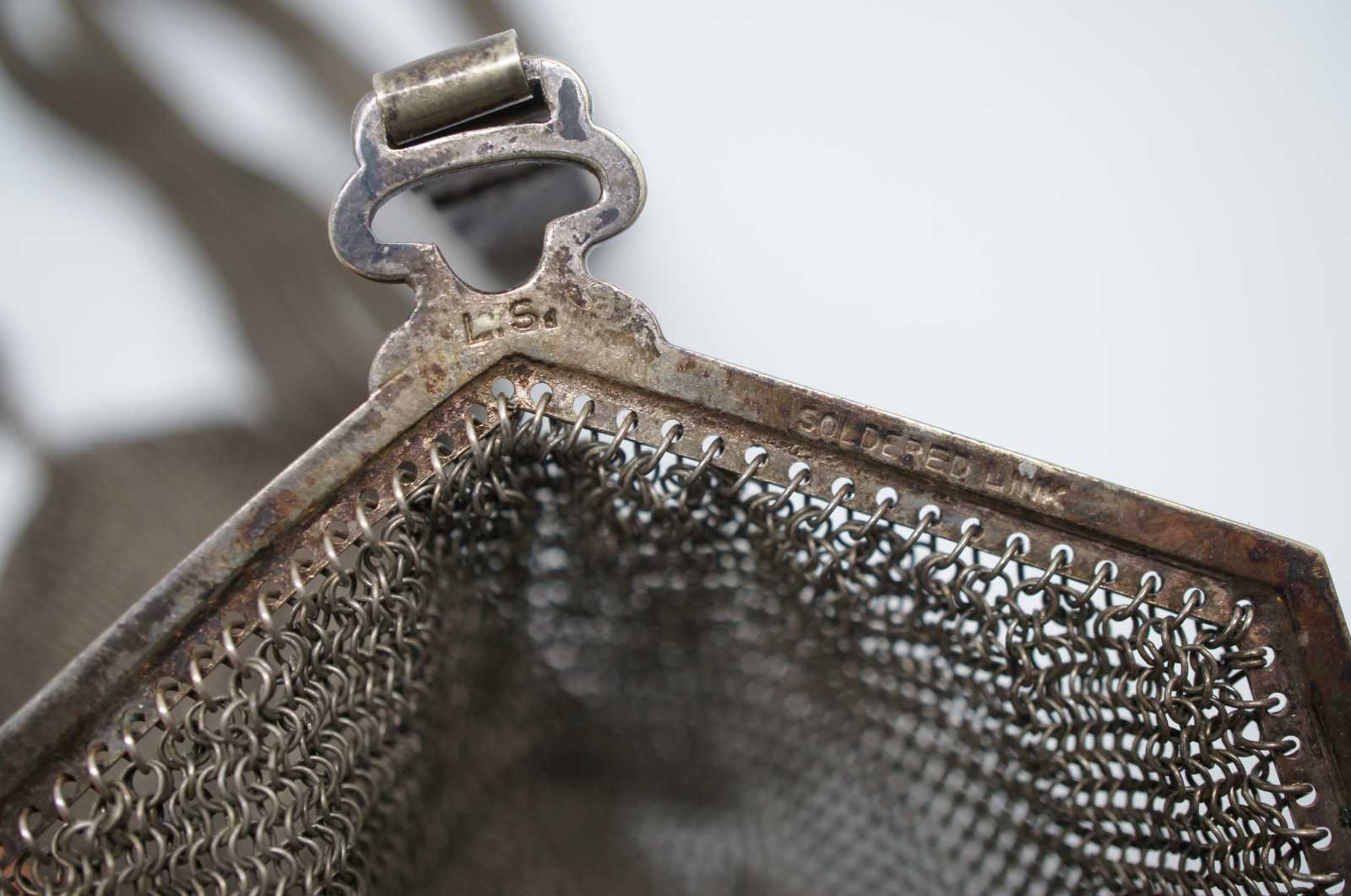 Victorian / Edwardian era chainmail mesh purse. Features classic styling, stamped L.S. Soldered Link on clasp.