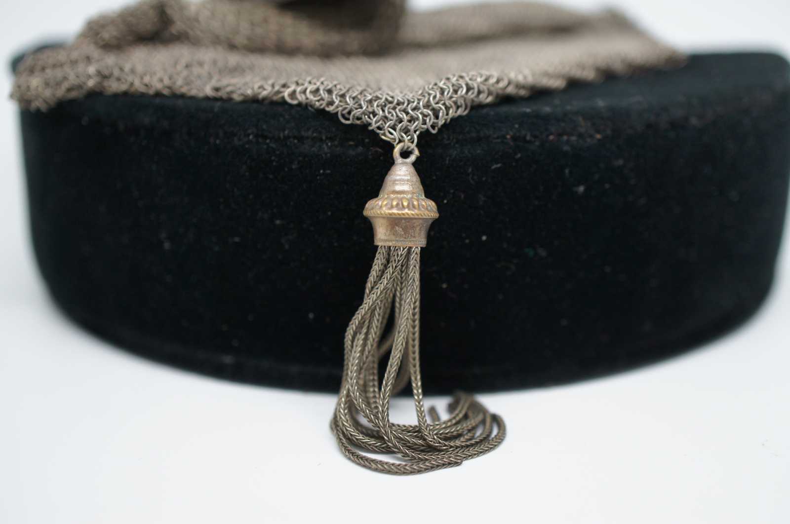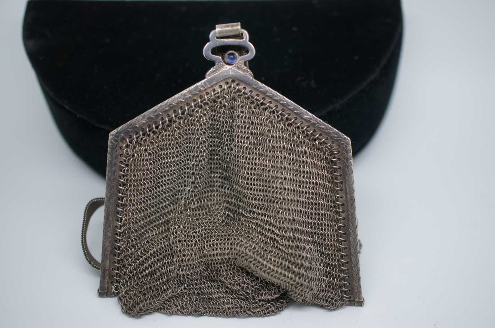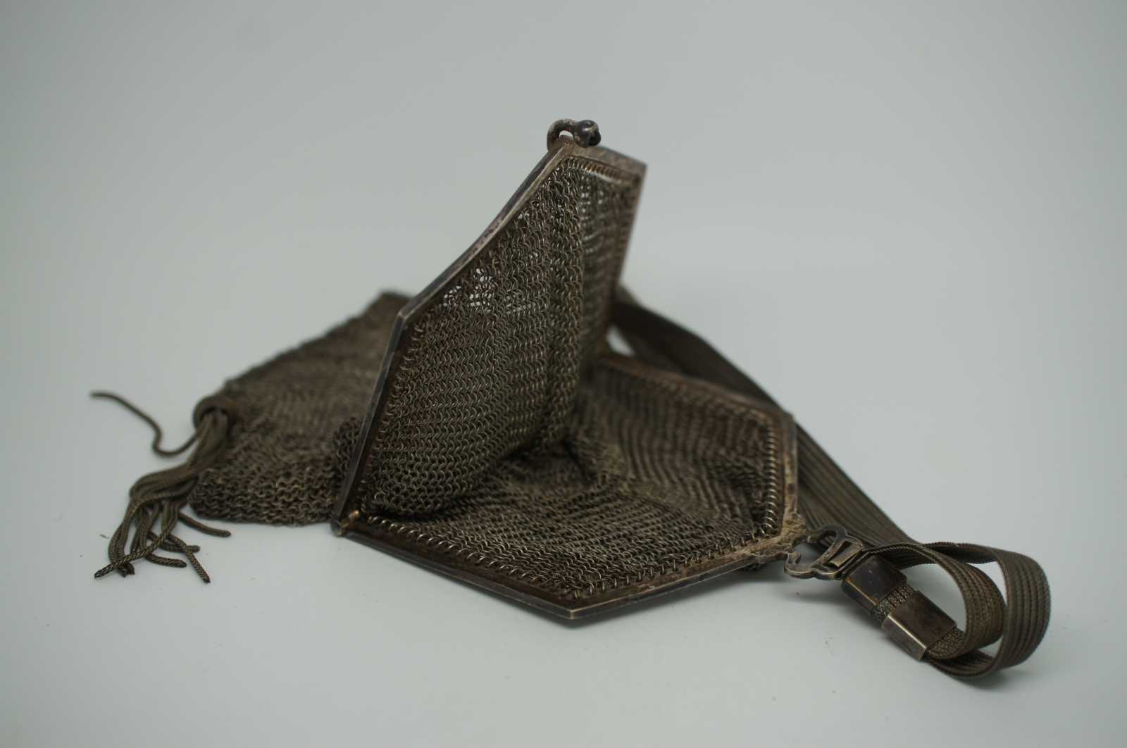 Victorian / Edwardian era chainmail mesh purse. Features classic styling, stamped L.S. Soldered Link on clasp.