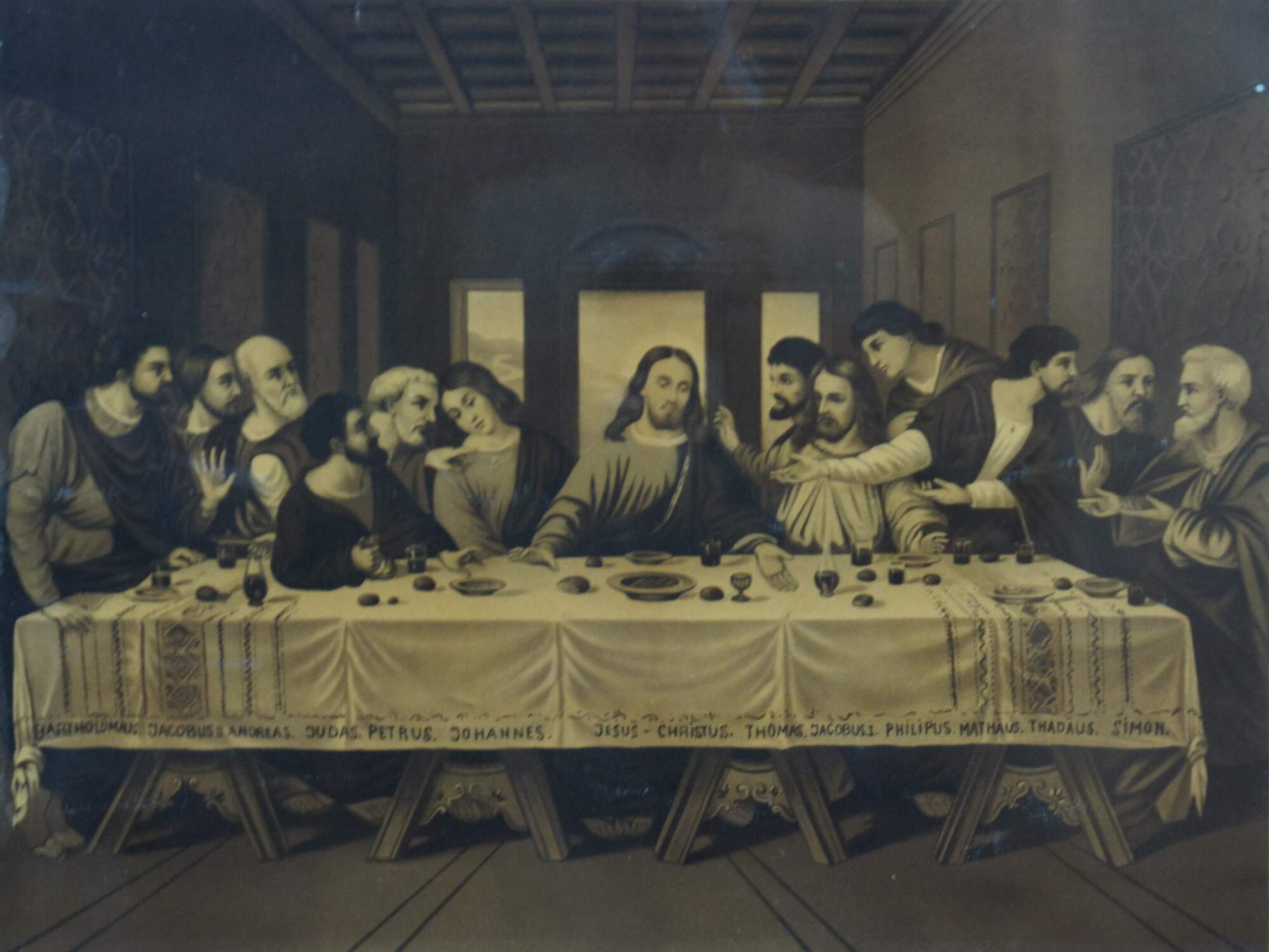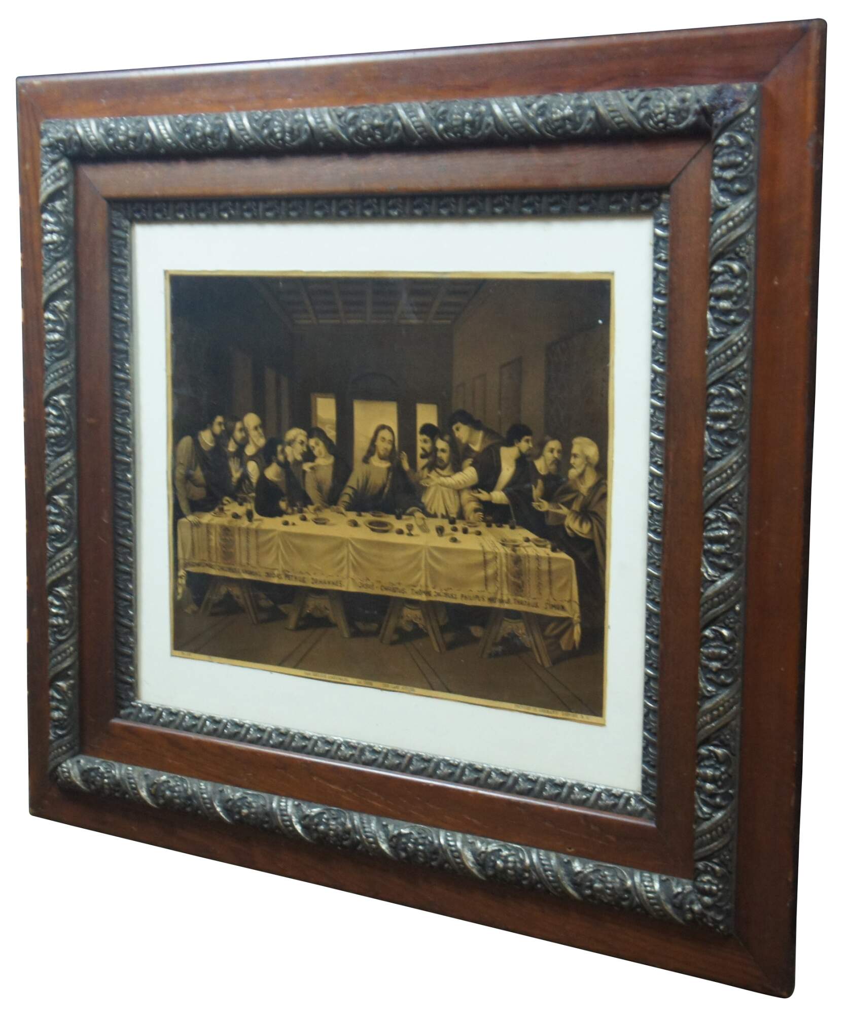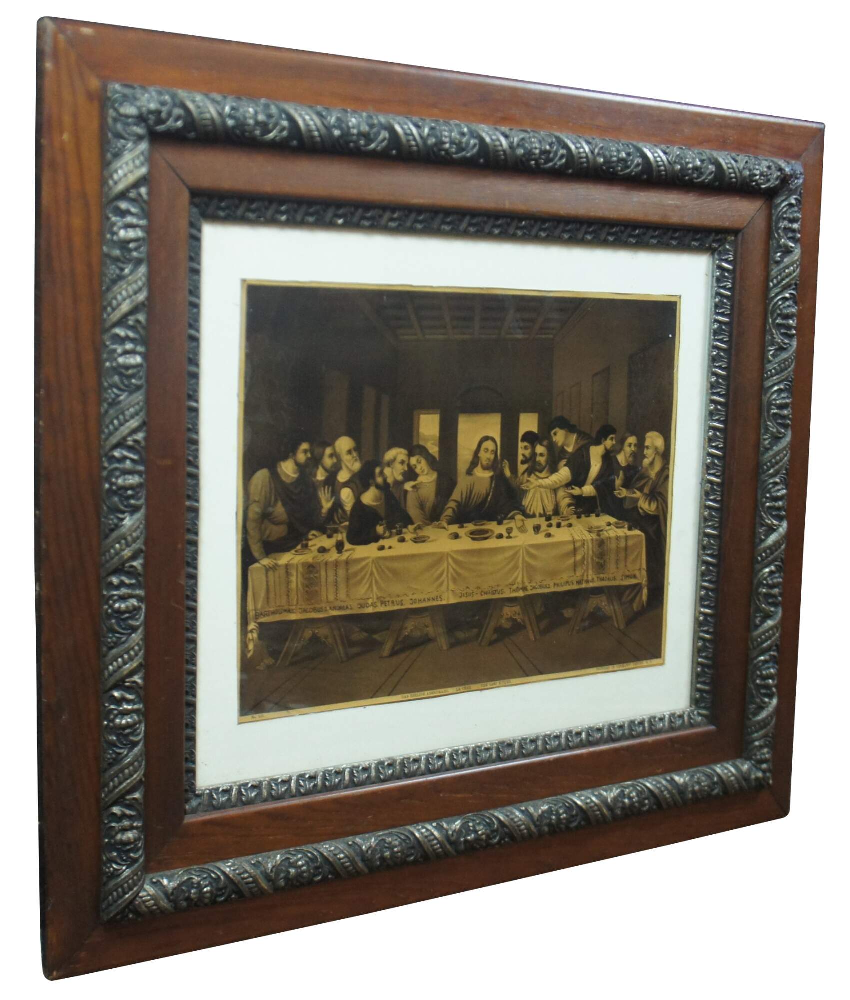 Early 20th century lithograph print of R. Tesar’s interpretation of Leonardo da Vinci’s “The Last Supper.” Printed in Germany. B. G. Depose. Placed in a nice period Victorian oak frame.