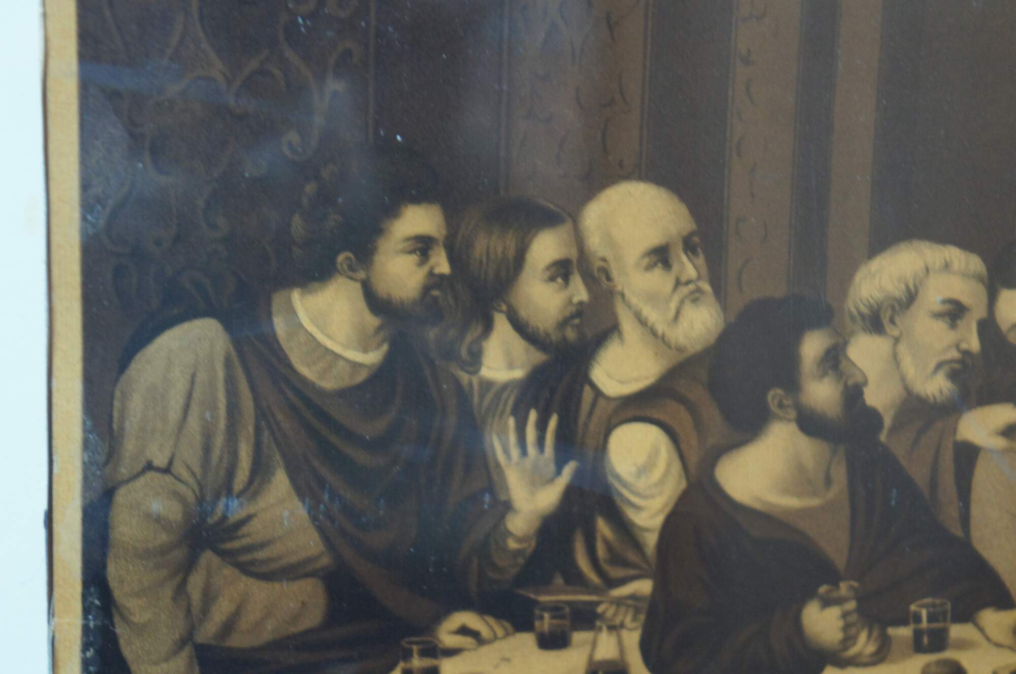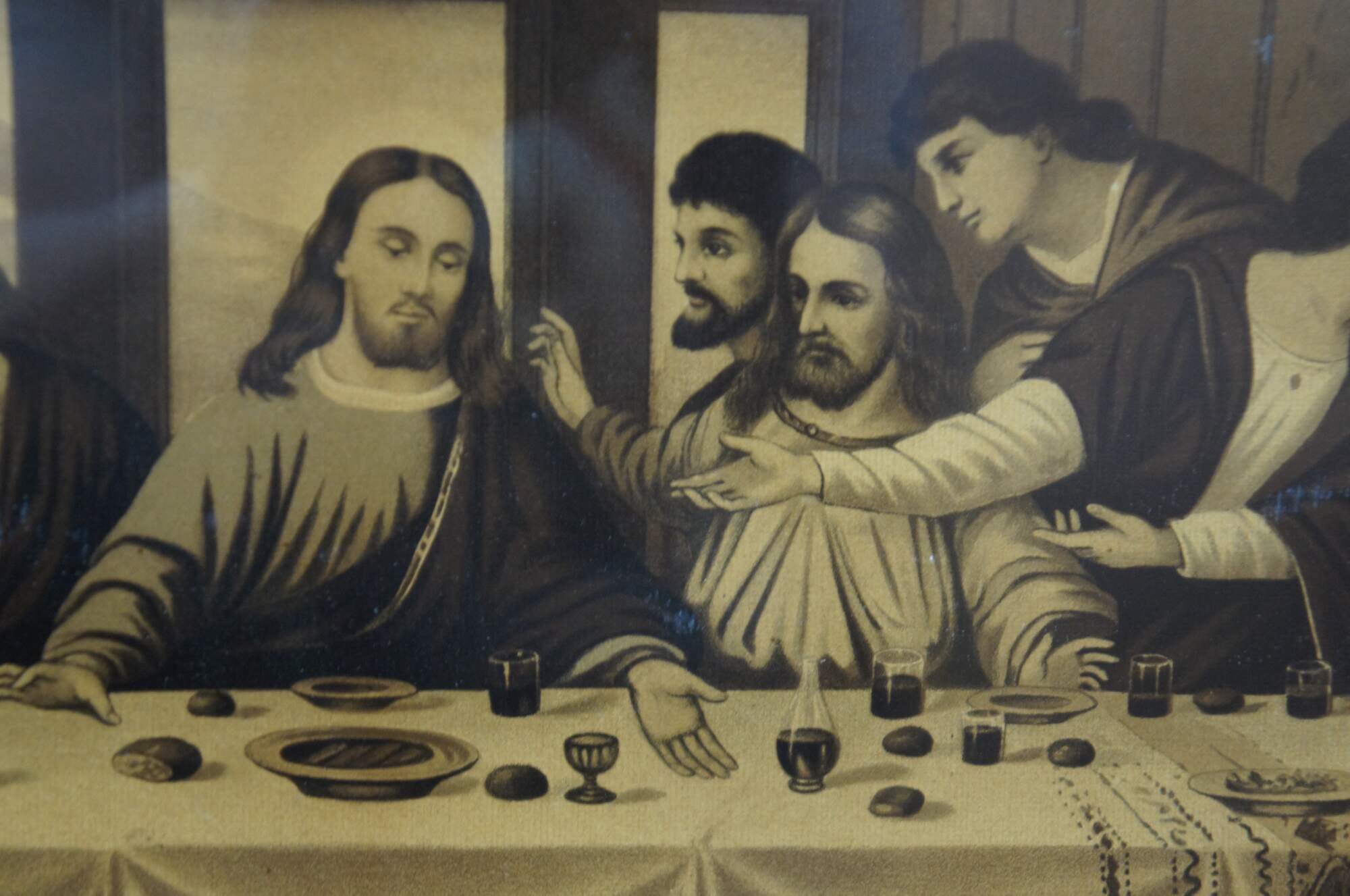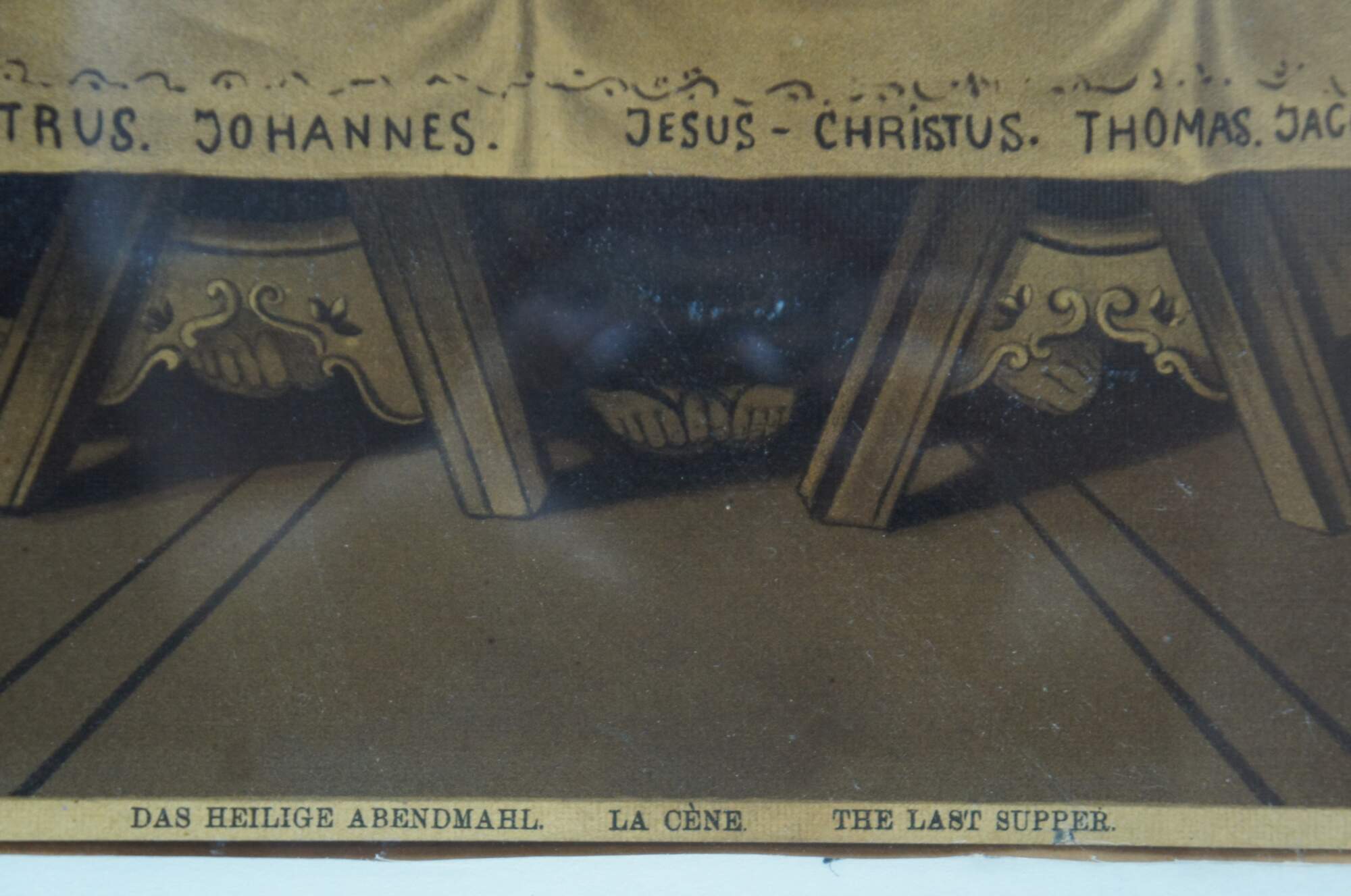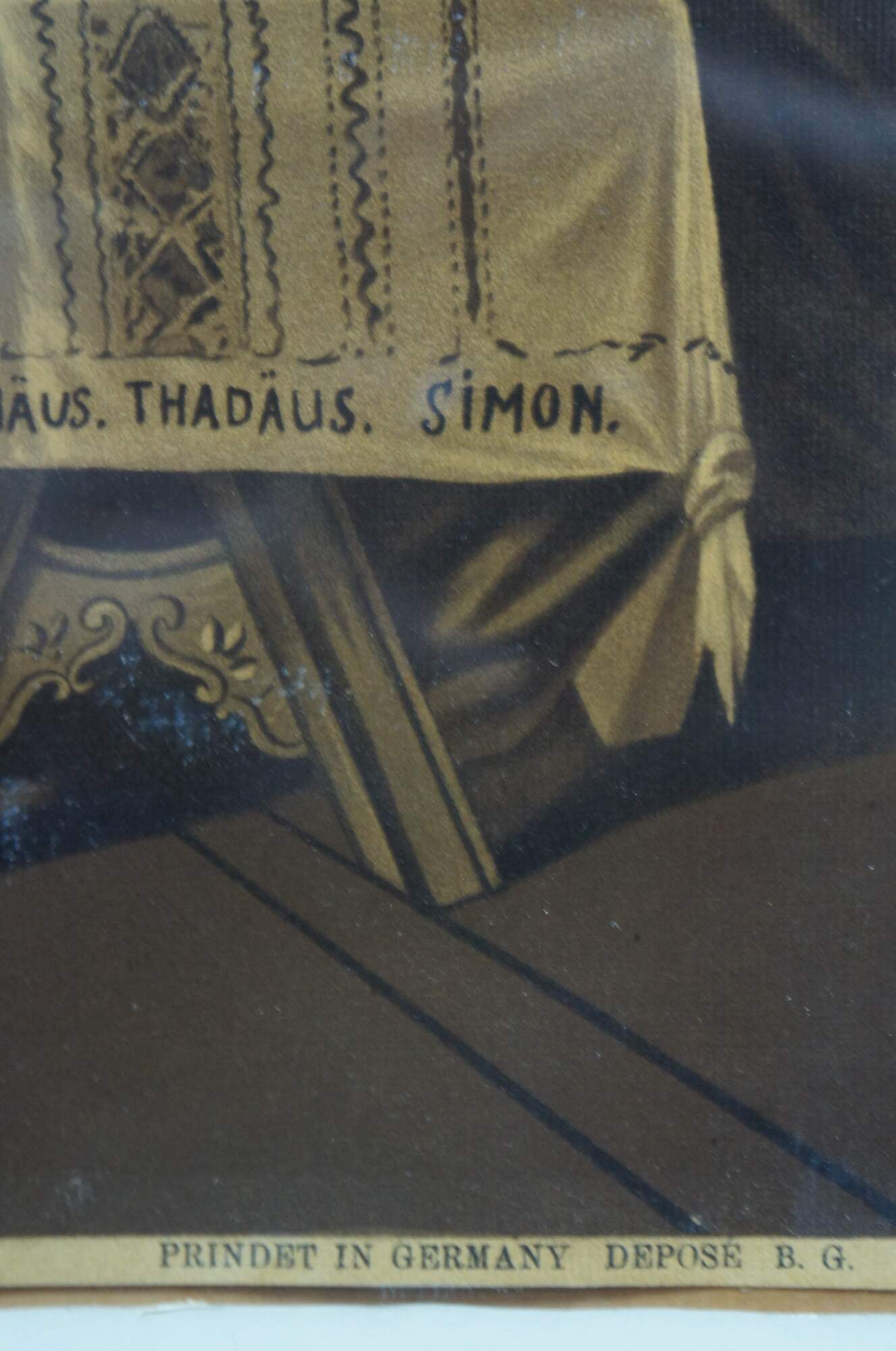 Early 20th century lithograph print of R. Tesar’s interpretation of Leonardo da Vinci’s “The Last Supper.” Printed in Germany. B. G. Depose. Placed in a nice period Victorian oak frame.