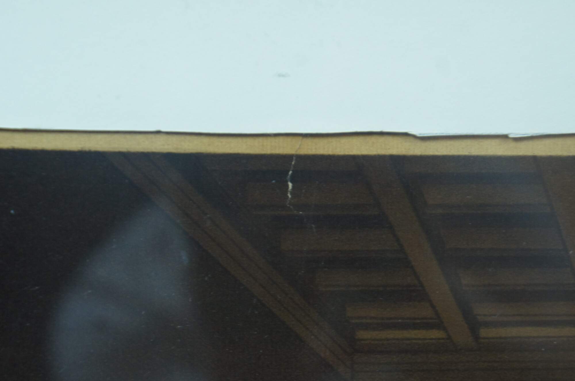 Good Overall - Minor Damage to Frame; Poorly Cut Mat; small tear at top of print