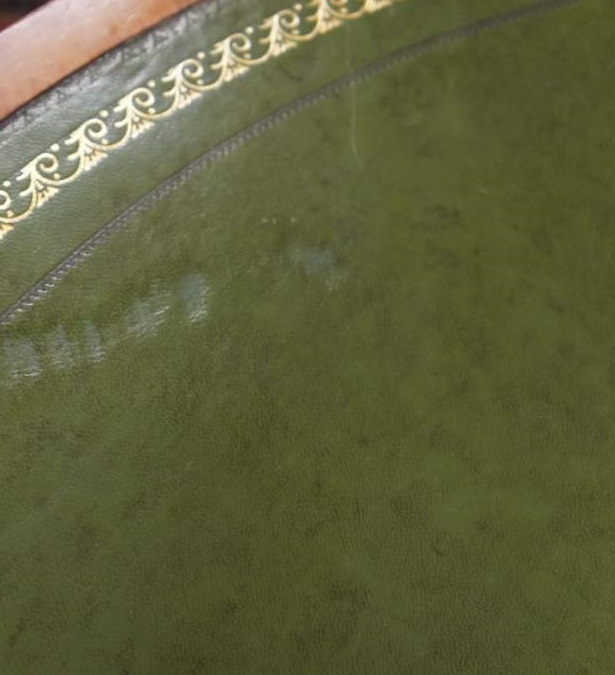 Wear Consistent with age - Good Antique Condition. Some Veneer Loss/Marks; Small Tear in Leather