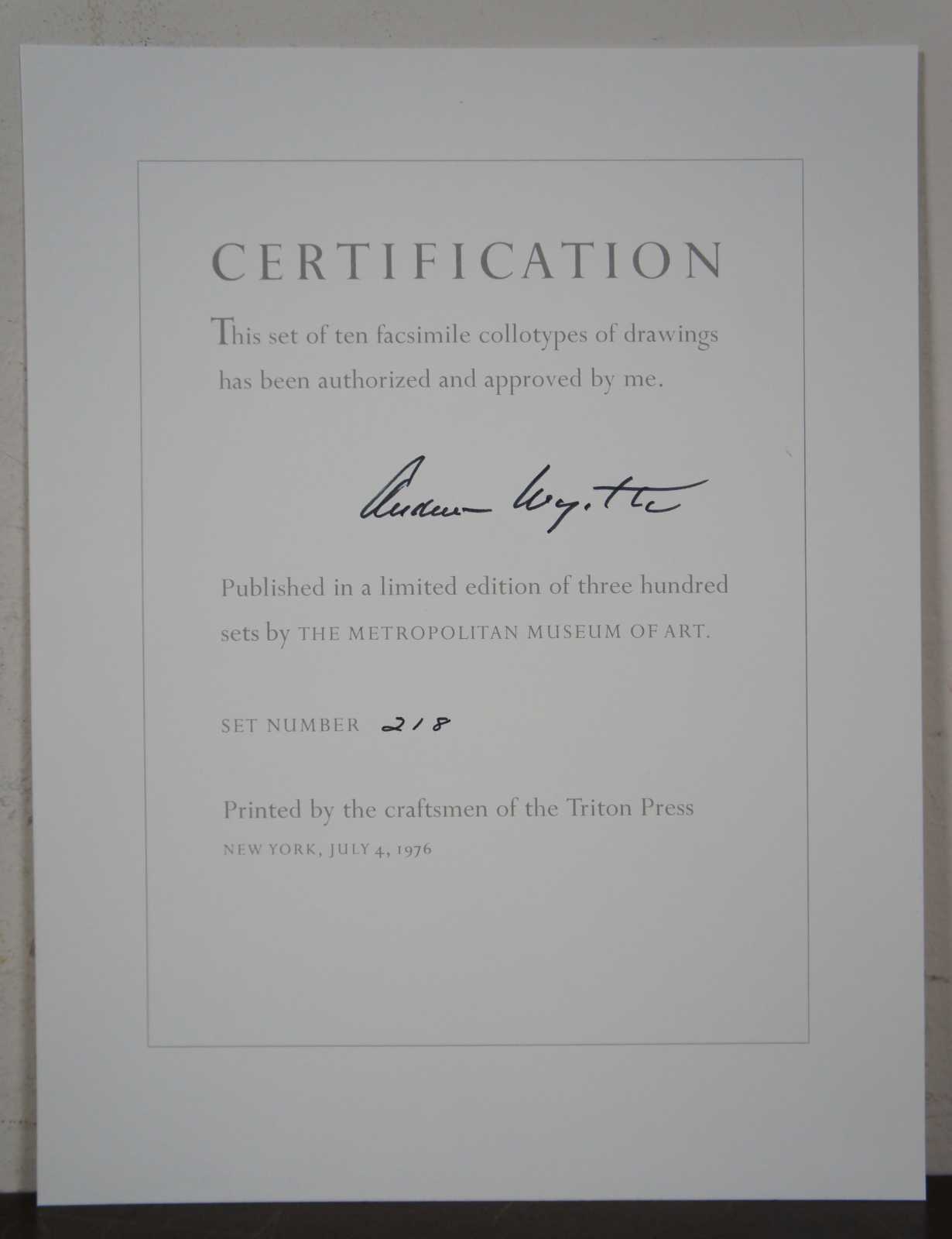 Christina’s World – Study, 1948” by Andrew Wyeth. Professionally framed. From a portfolio of 10 facsimile collotype prints of drawings by Andrew Wyeth. Produced by The Metropolitan Museum of Art, 1976. The portfolio is certified and signed by Andrew Wyeth which was produced in a limited edition of three hundred sets. Photocopy of original certification included. This was set 218/300 printed by the craftsmen of the Triton Press New York, July 4th, 1976.