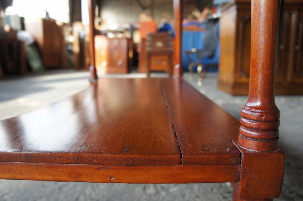Gently Used - Slight wobble; faint ring along bottom shelf; splits in both shelves