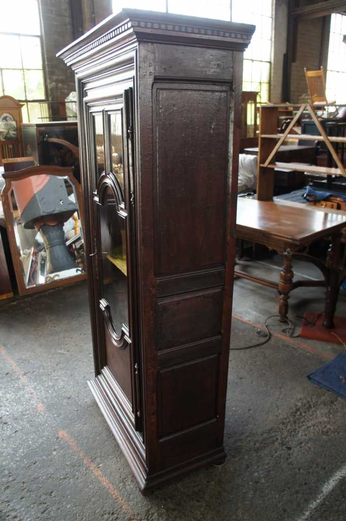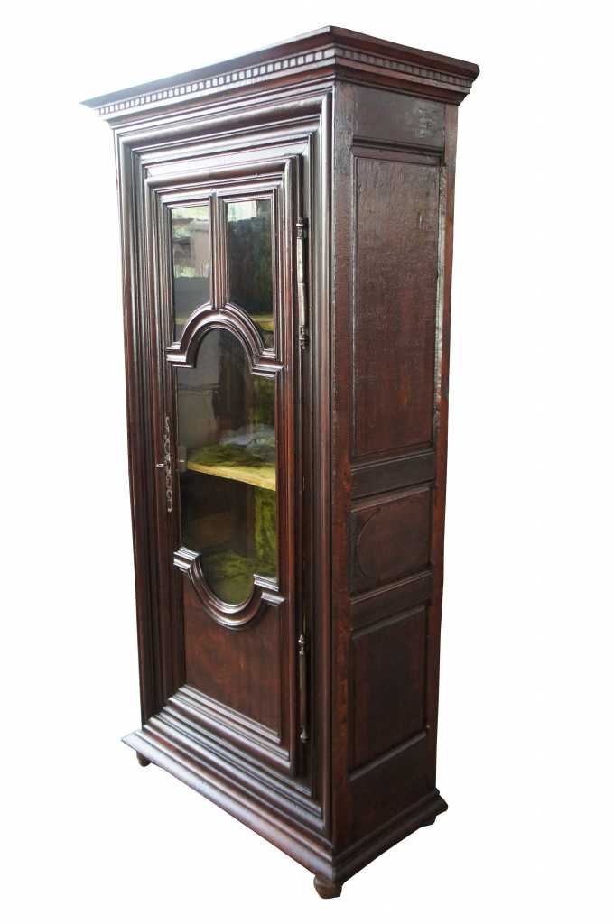 A gorgeous early 19th century display cabinet. Made from oak with paneled sides and glass front. Interior is felt lined. Perfect for books and collectibles.