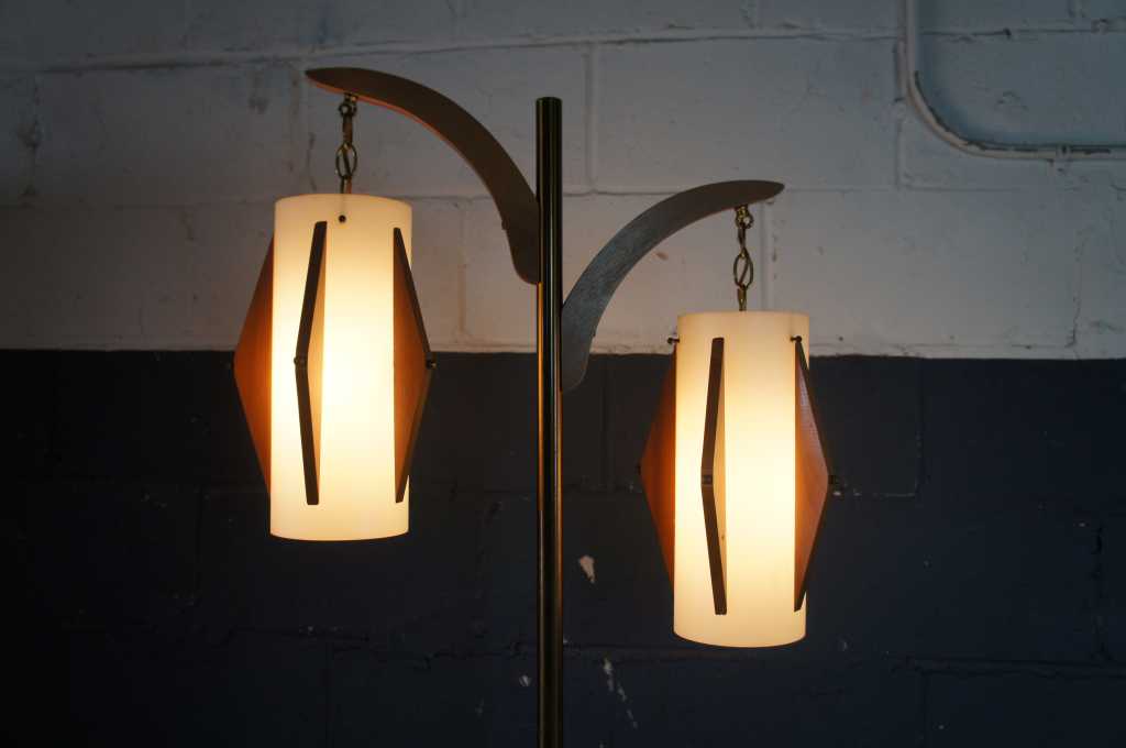 Vintage 1960s Mid Century Modern Danish Floor Lamp Teak Brass Atomic Retro MCM