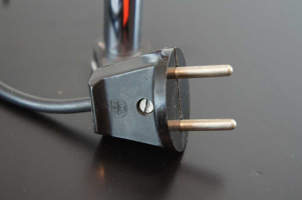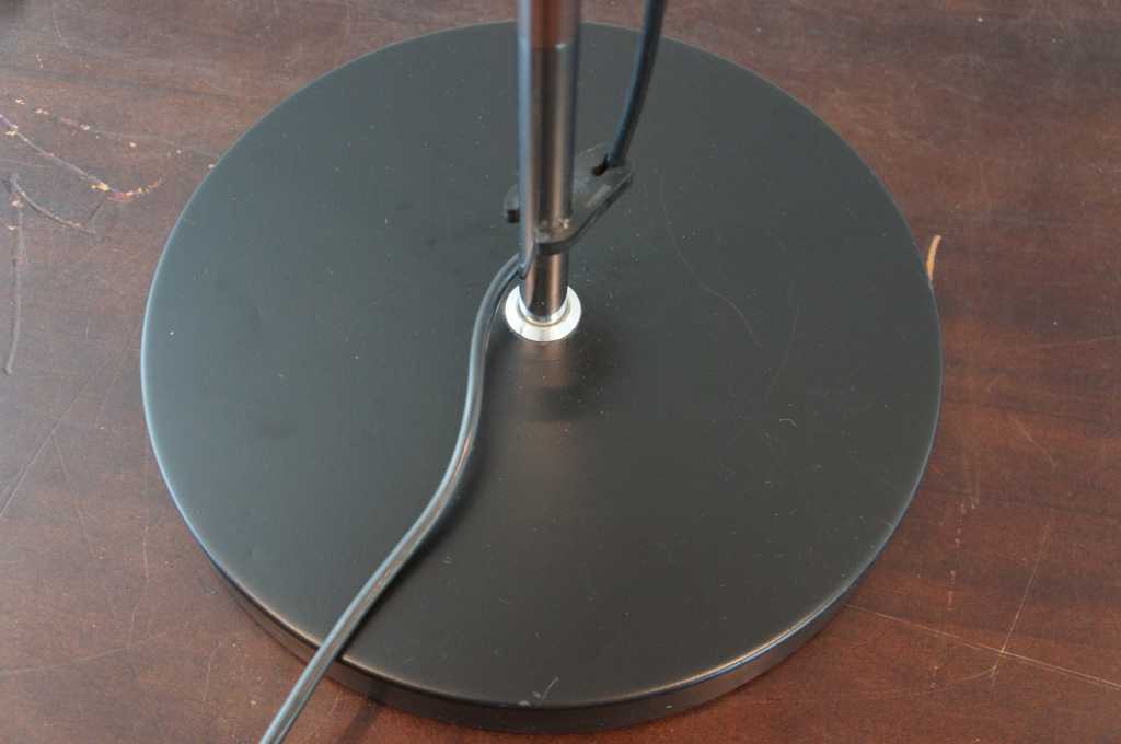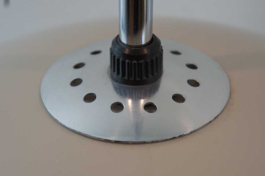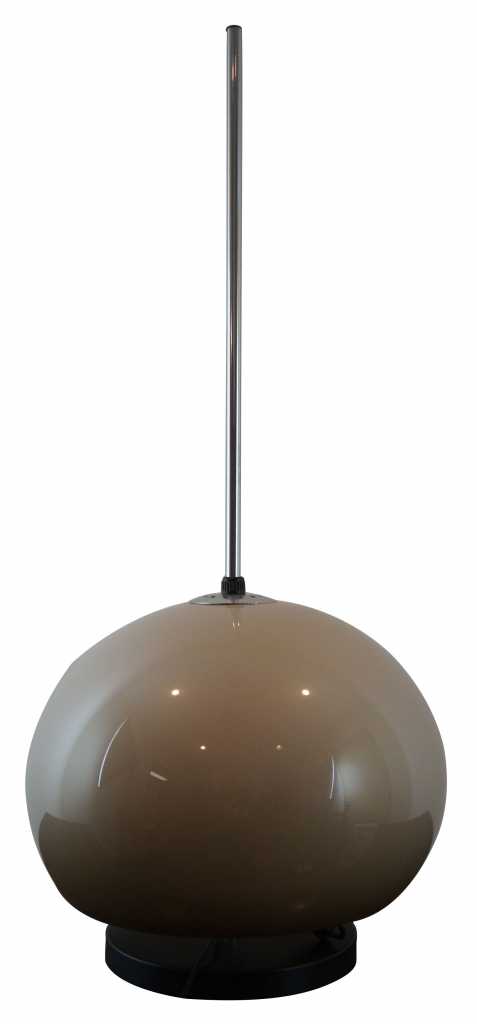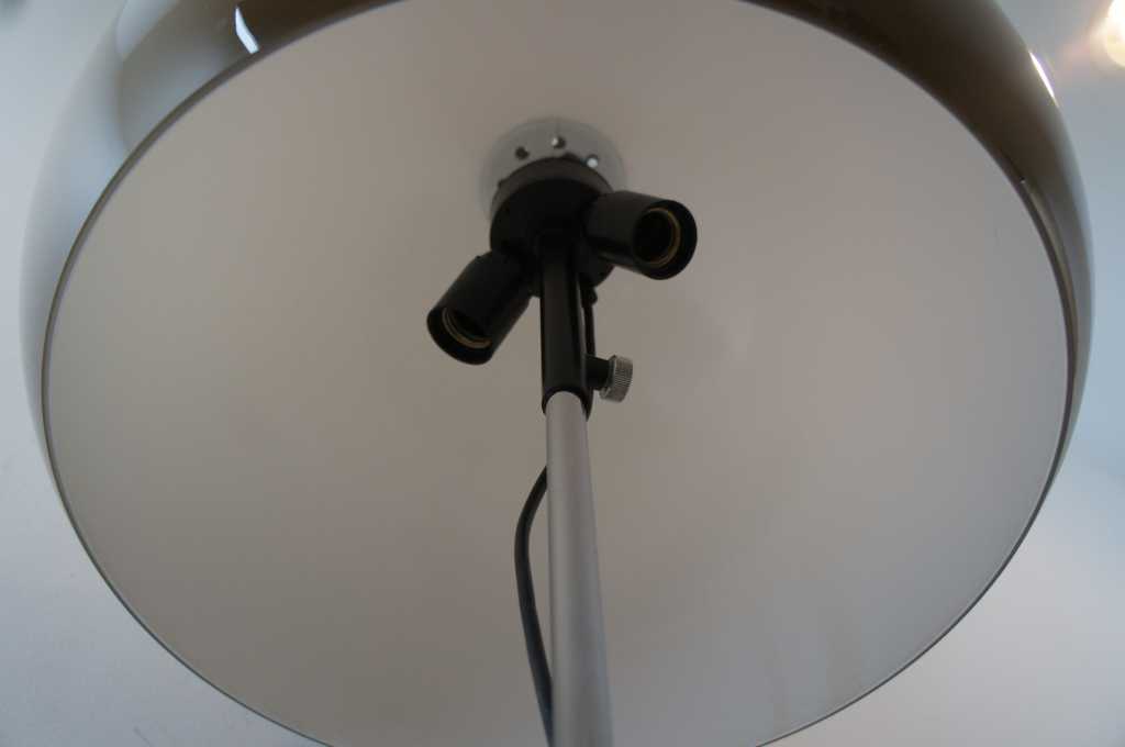 Harvey Guzzini Mushroom lamp. Features a chrome shaft, black base and European plug. The light neatly adjusts by unscrewing a bolt along the fixture allowing it to raised or lowered to the desired height.