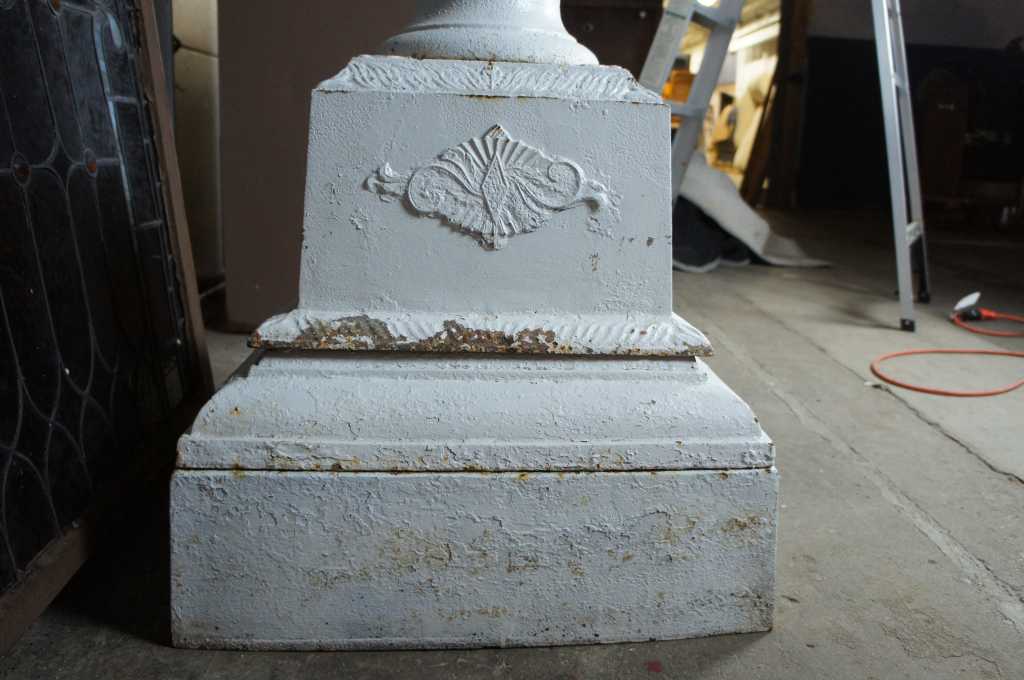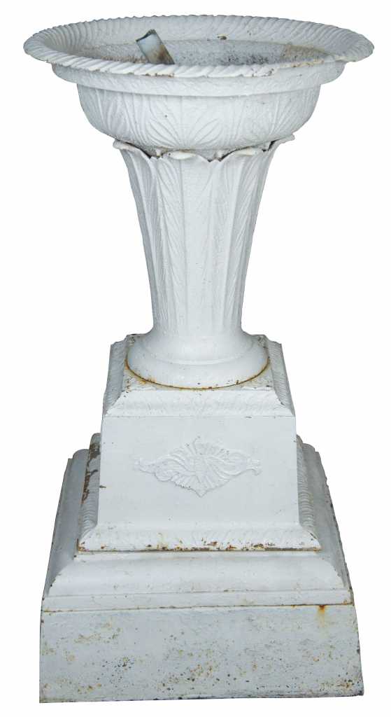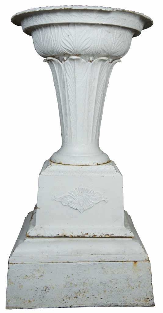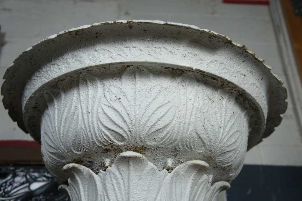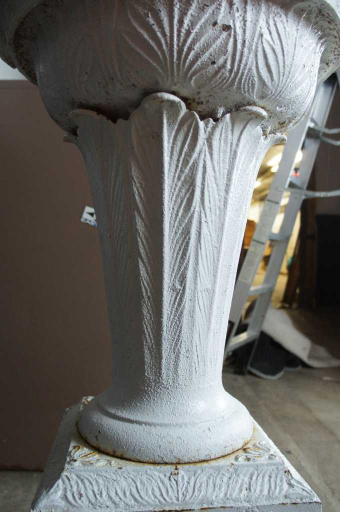 Up for consideration is a large cast iron garden planter with tiered base. Beautifully designed with long acanthus leafs leading up towards the mouth of the bowl. The perfect statement for any garden or porch.