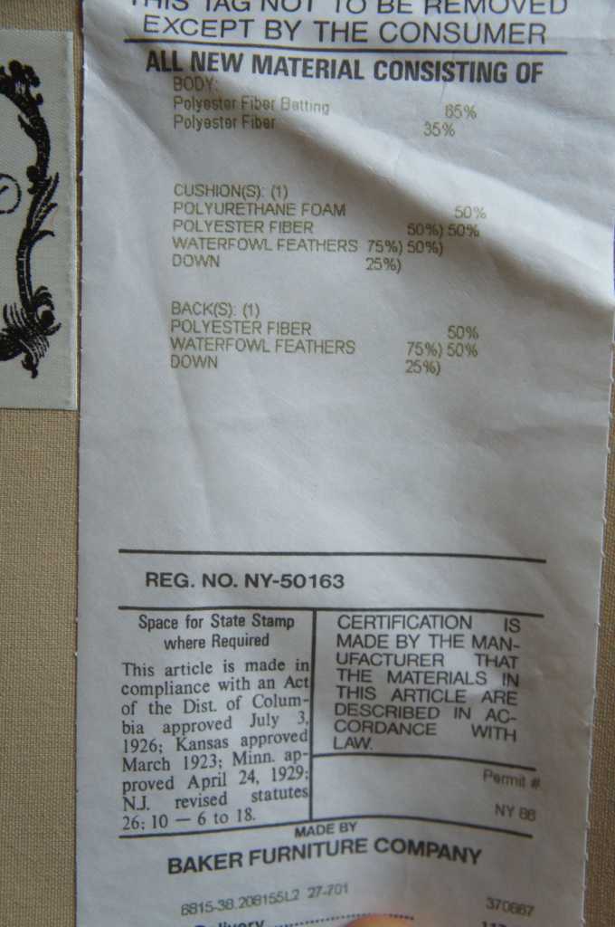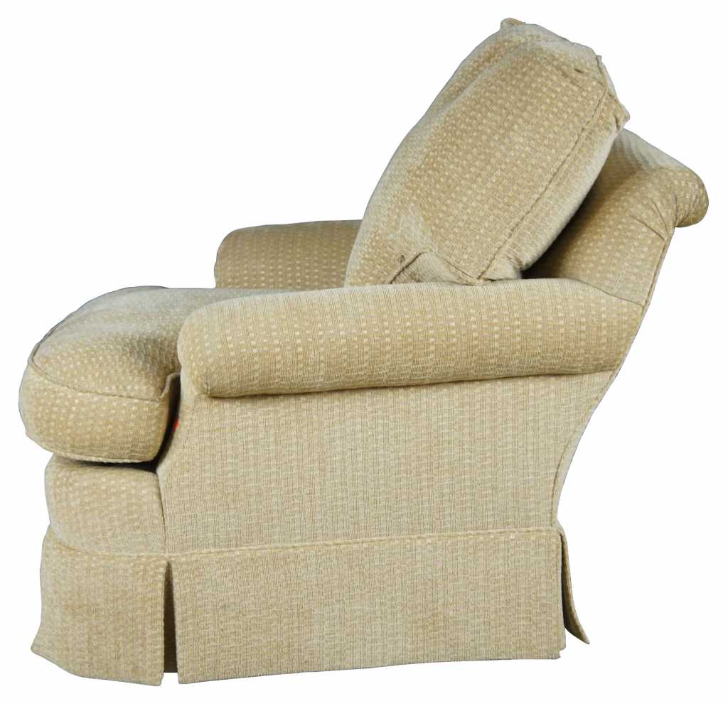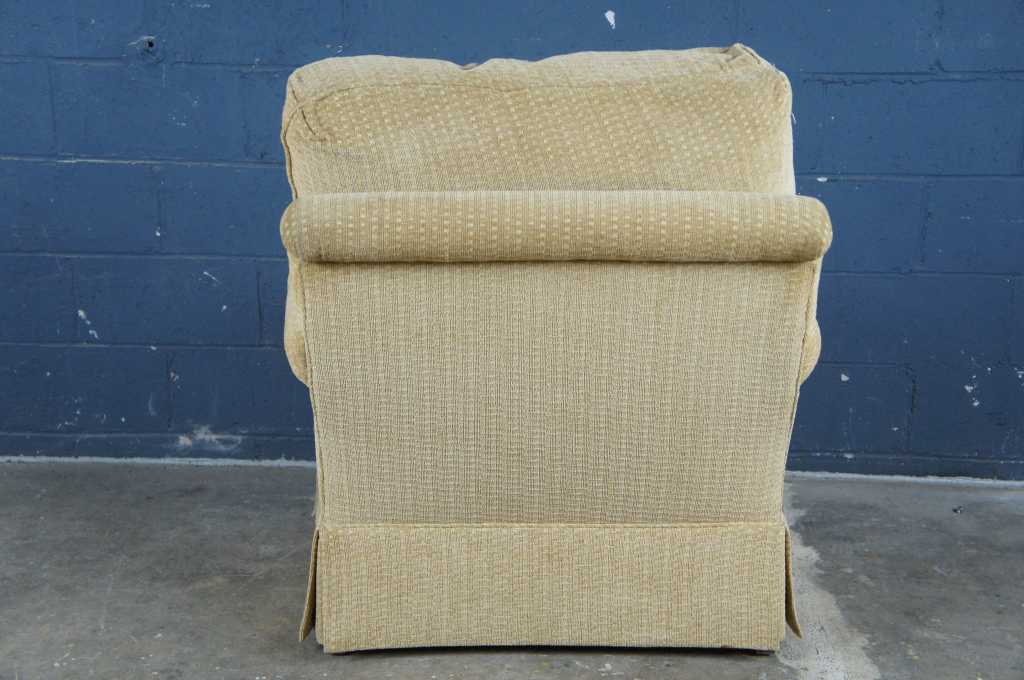 Traditional Baker Club Chair. Beige upholstered with rolled arms cushioned seat and pillowed back. A nice addition to any sitting area.