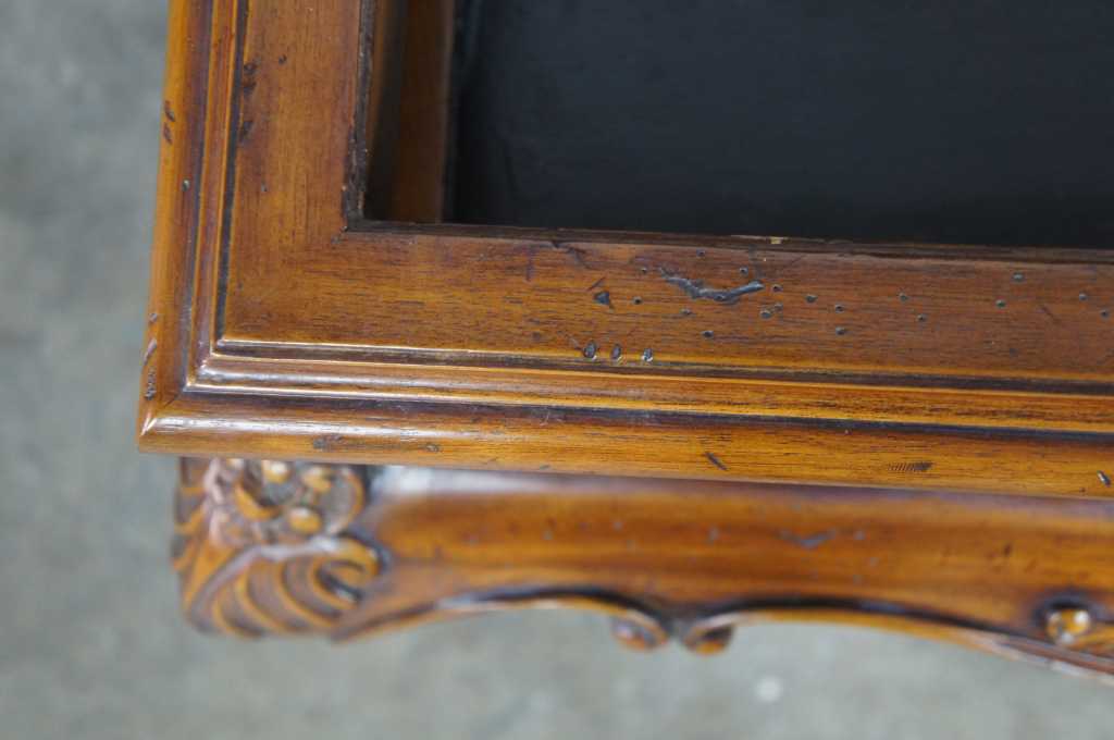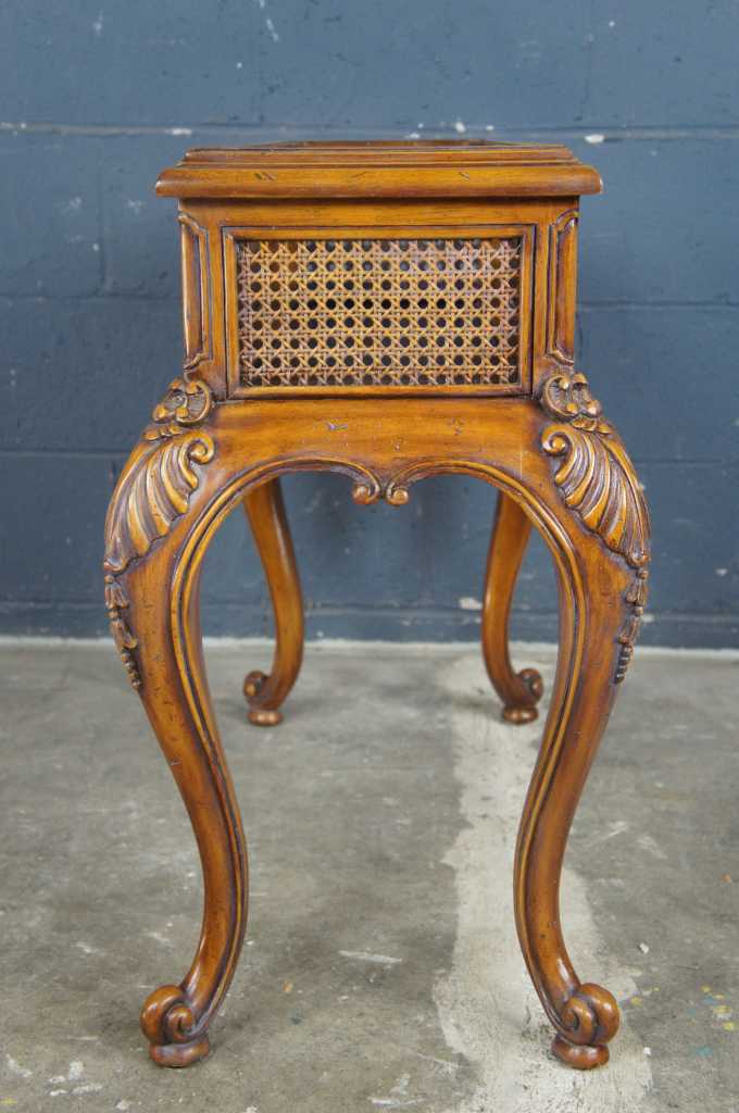 Made from mahogany with rattan siding and intricately carved cabriole legs. Great for displaying plants or a neat dry bar for liquor display.