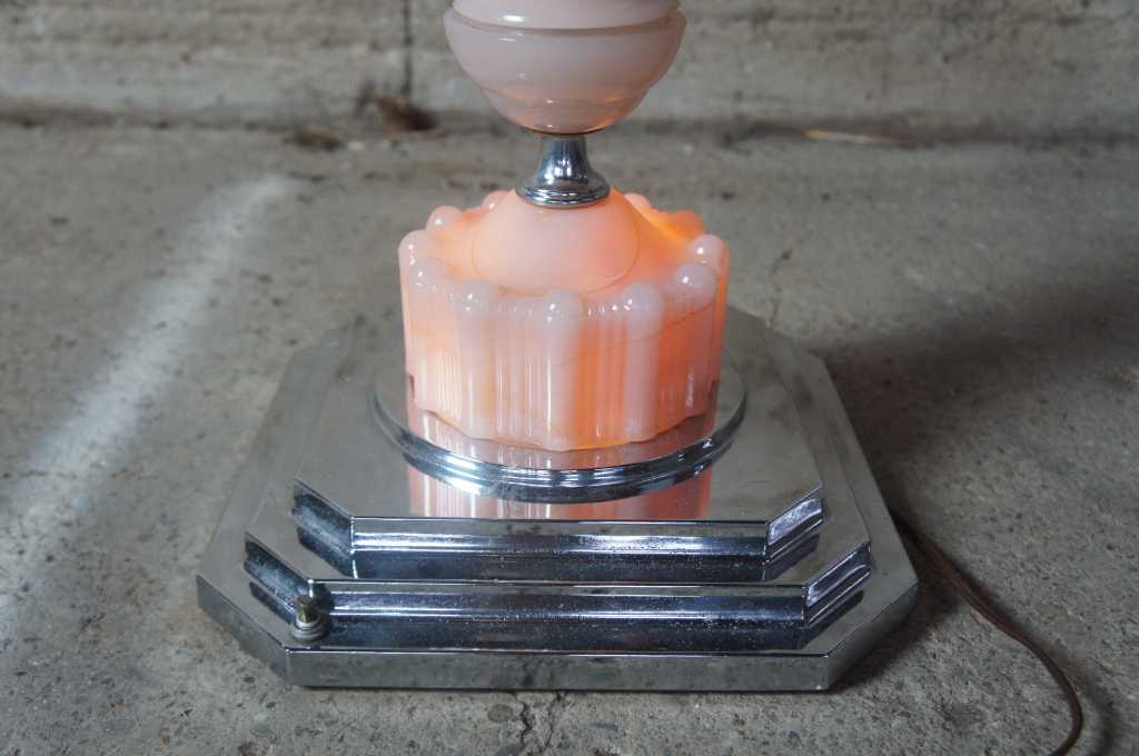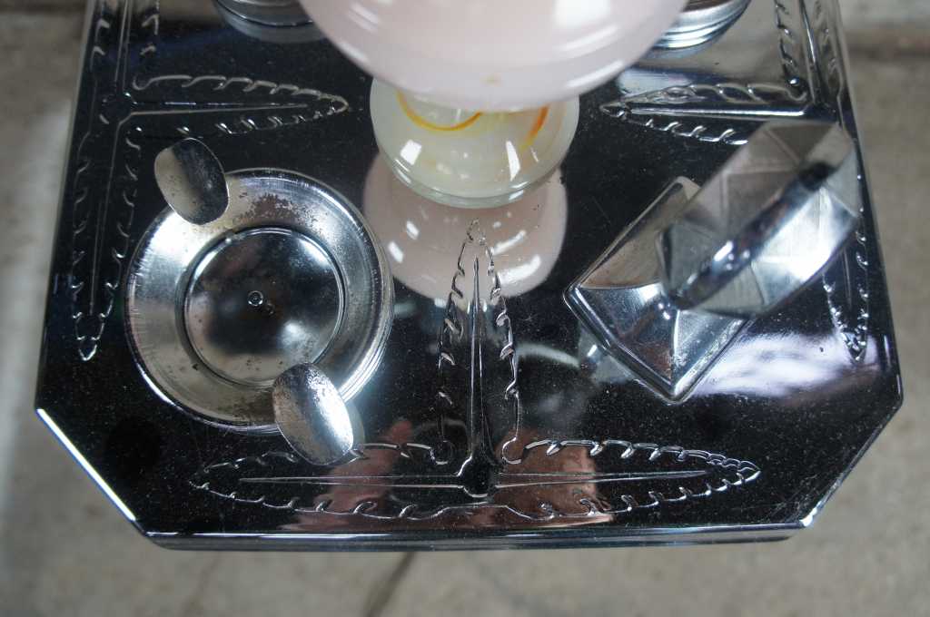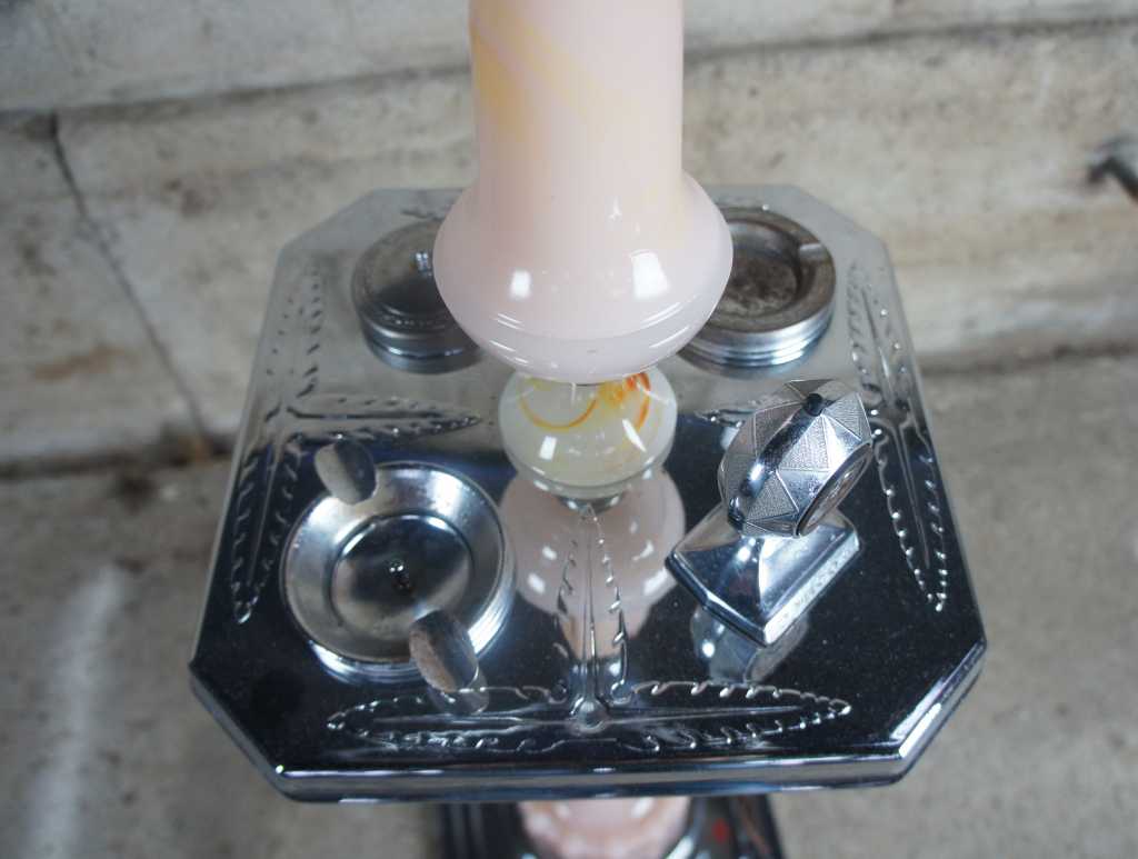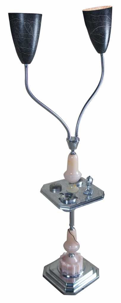 Chaplick MFG Company art deco smoke stand with adjustable lights. Features an ashtray, cigarette holder and lighter. Made from glass and chrome.