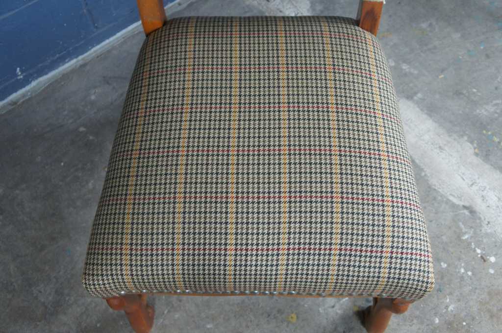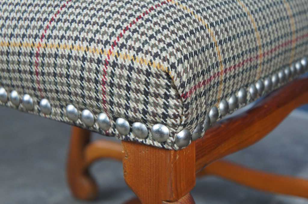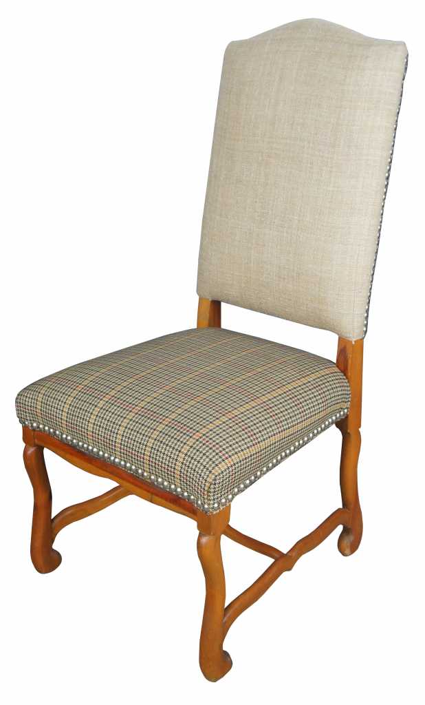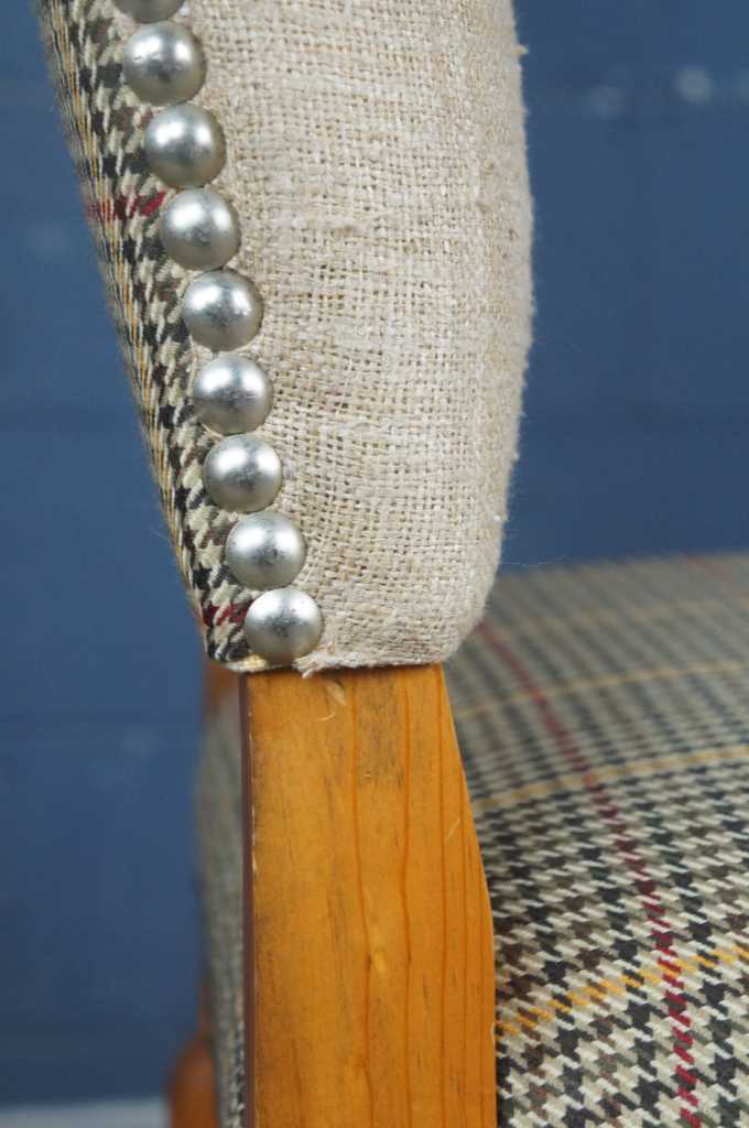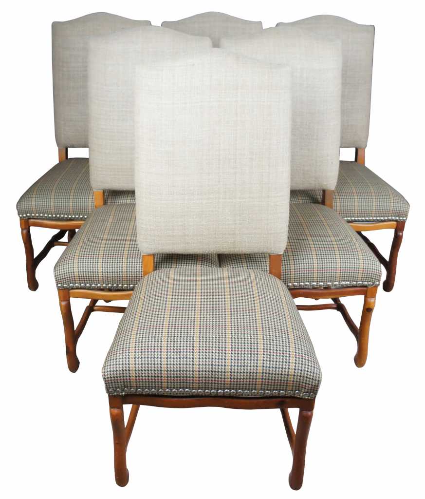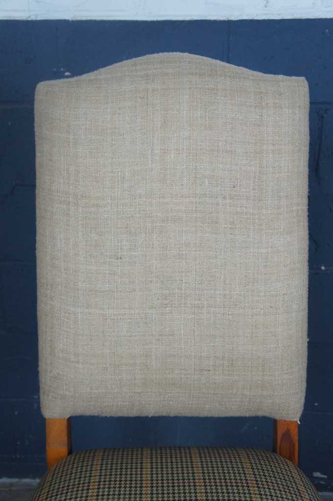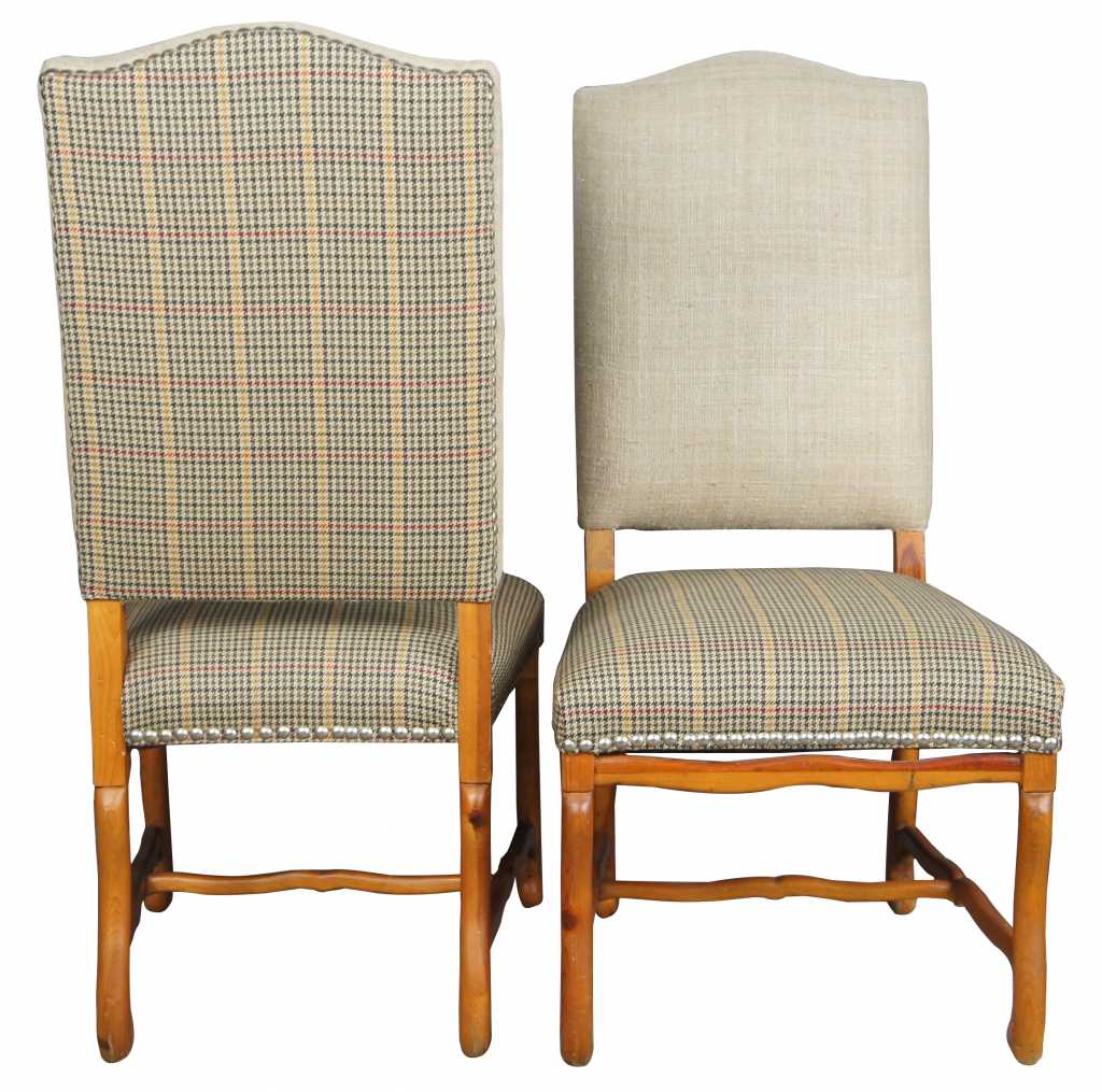 Ralph Lauren "Michelle" side chairs. Old world inspired with scrolled feet. Features a houndstooth plaid seat with nail-head trim and shaped burlap back