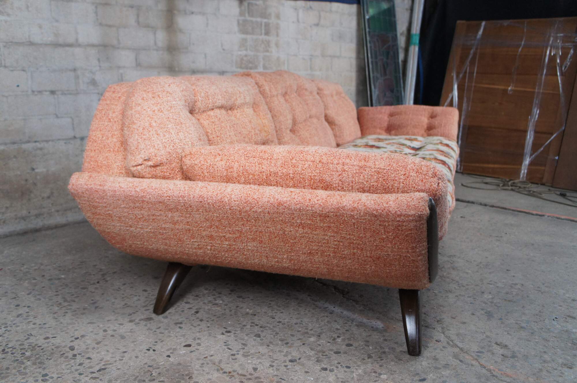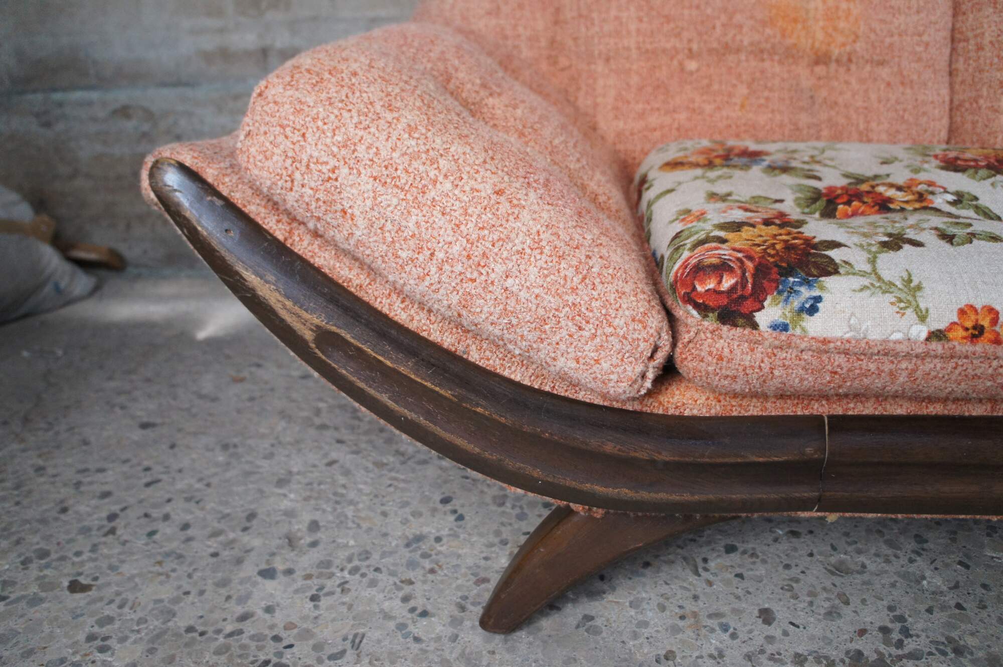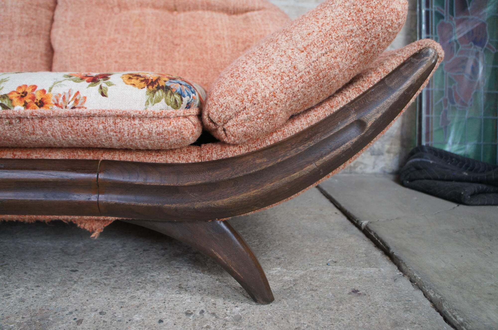 Adrian Pealsall mid century modern / atomic era sofa or couch featuring traditional gondola form with the original peach and tufted floral fabric.