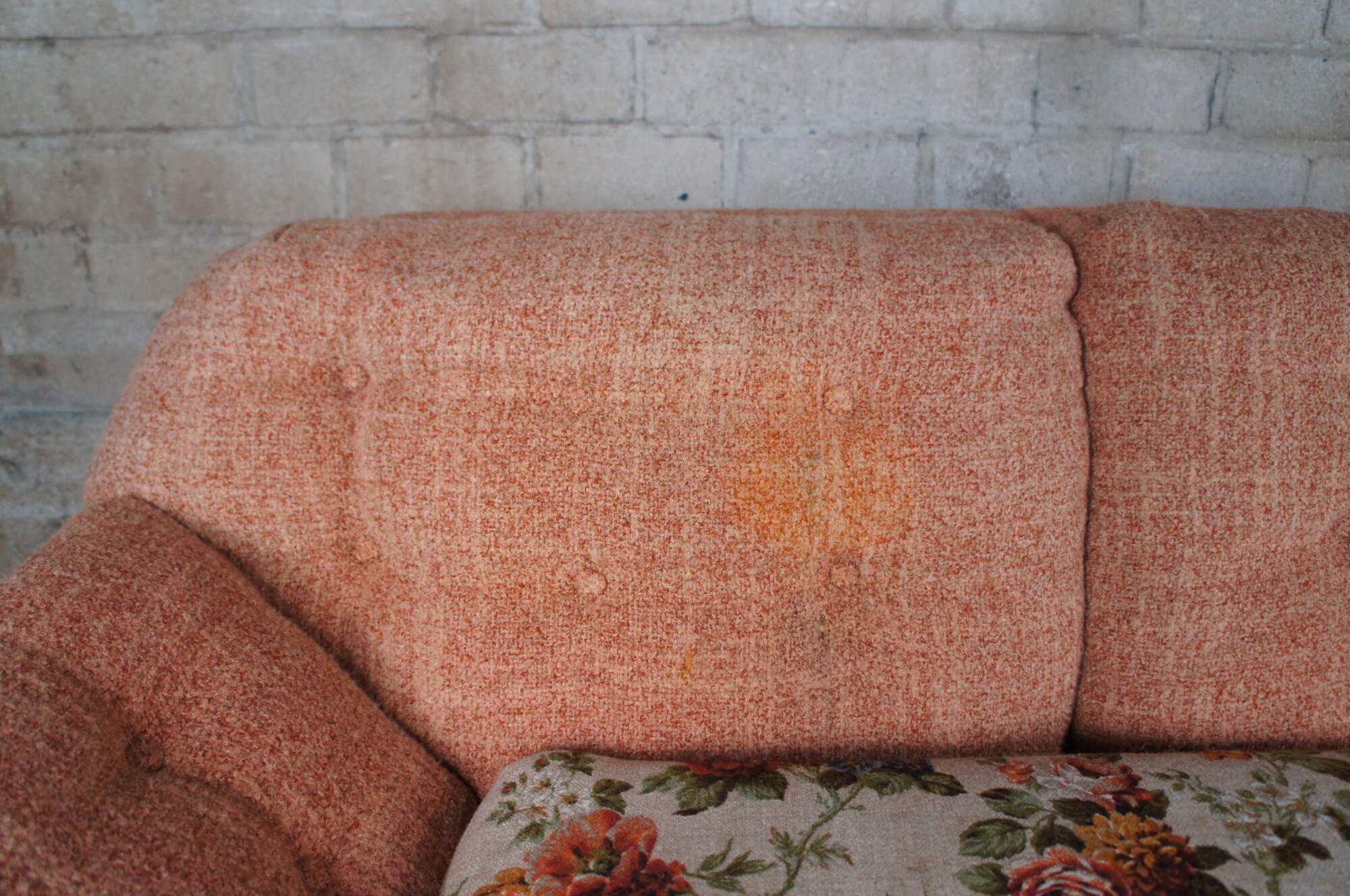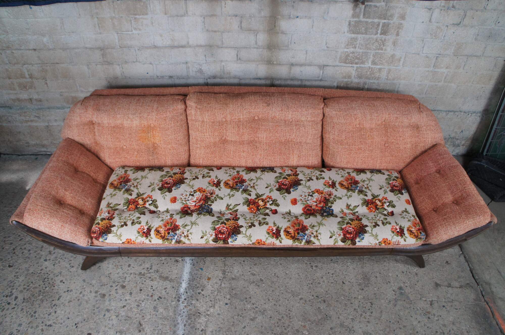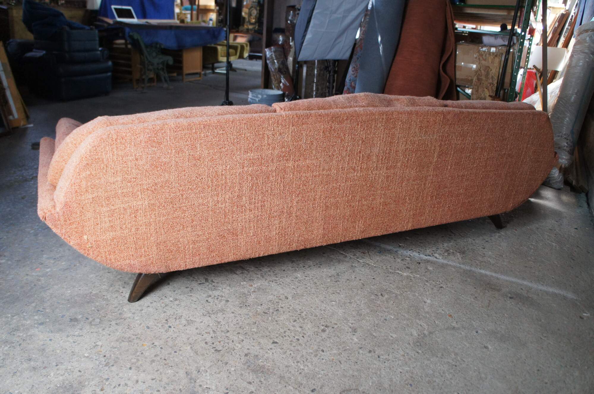 Adrian Pealsall mid century modern / atomic era sofa or couch featuring traditional gondola form with the original peach and tufted floral fabric.