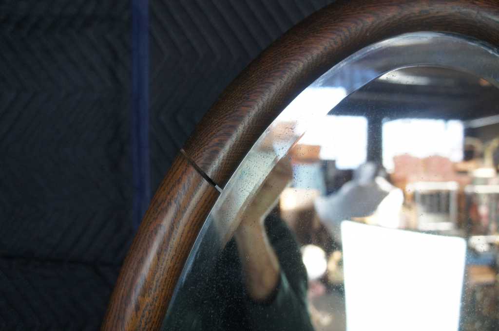 Light separation on mirror frame, but we will repair before shipment. Mark/ring at back of top surface