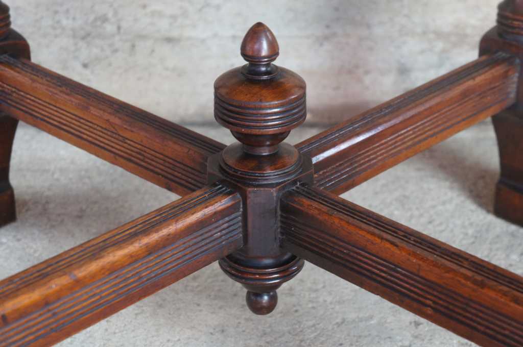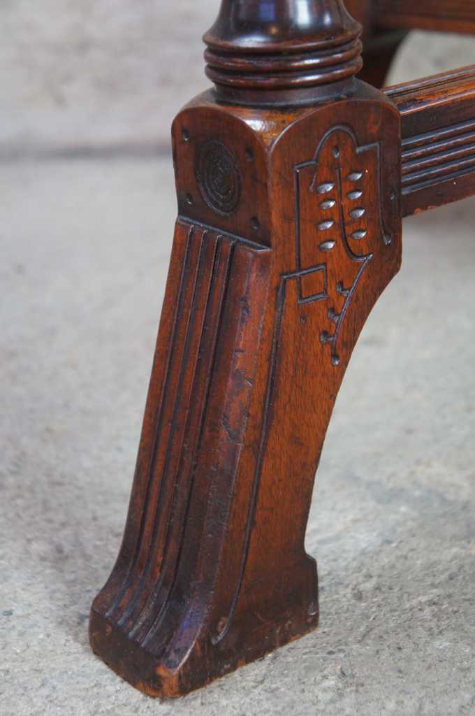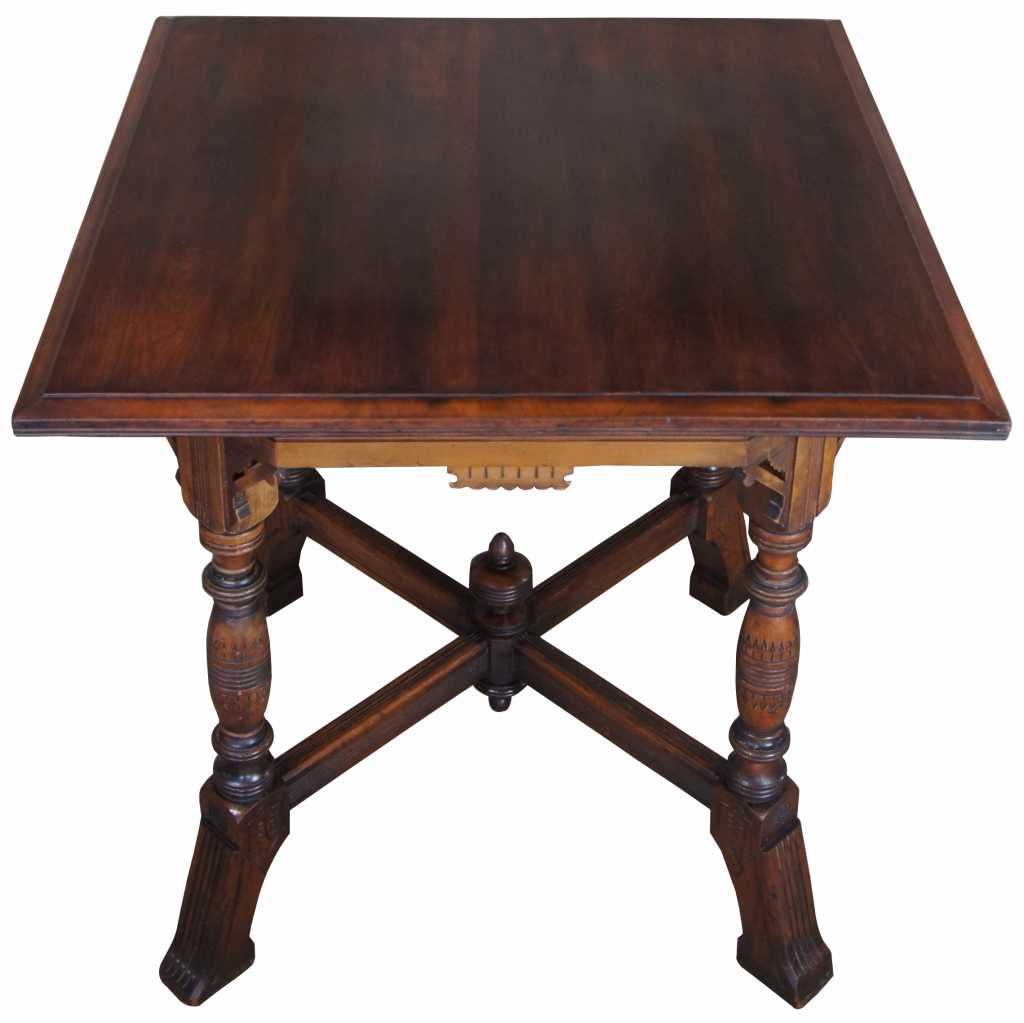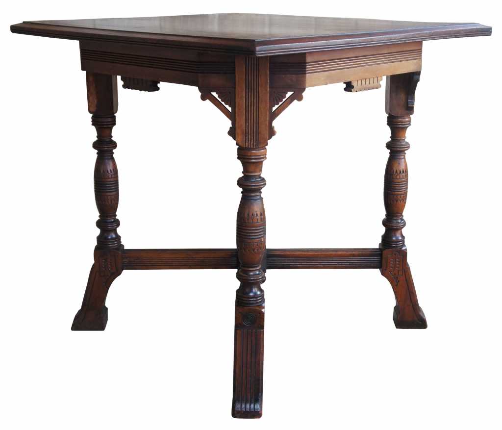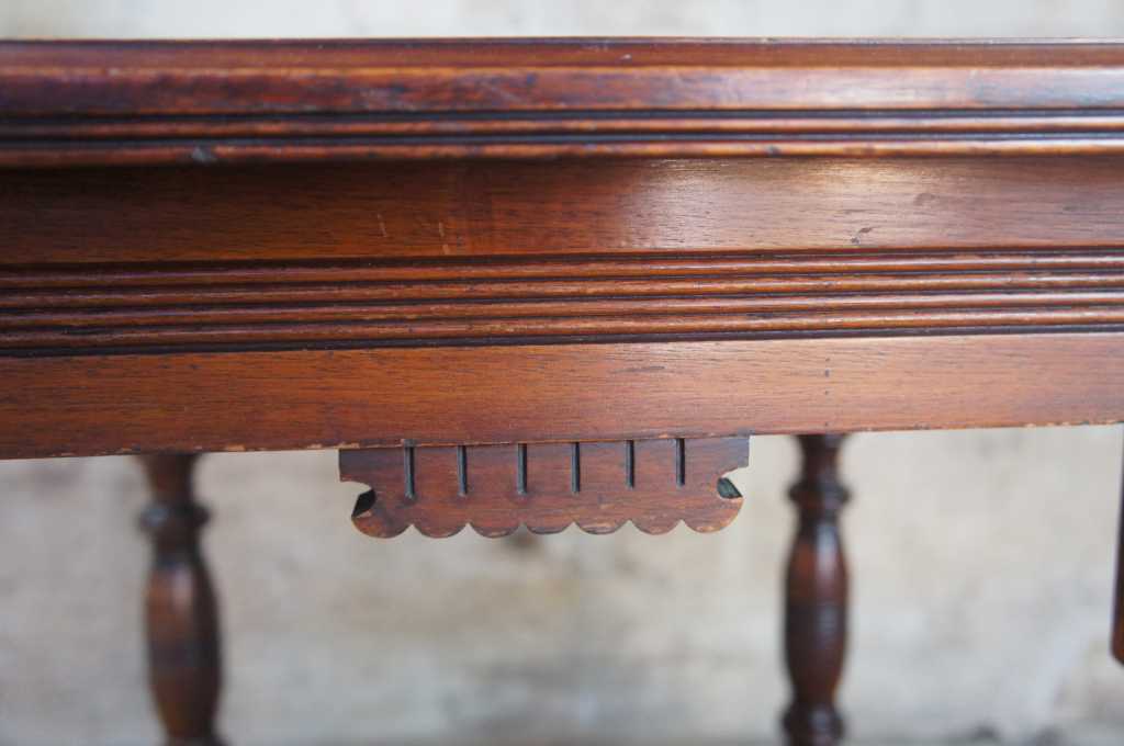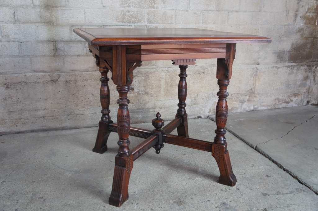 Circa 1870s aesthetic parlor table, made from walnut with intricately carved details.