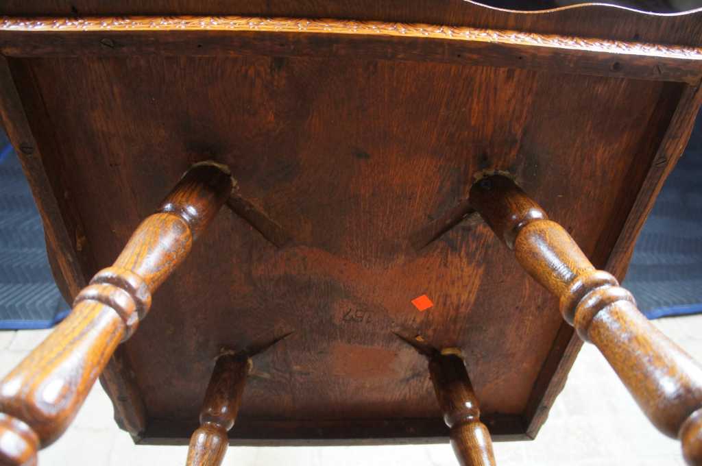 Very good overall; some marking and distressing to top and shelf; some rings; joints reinforced and reglued at some point.