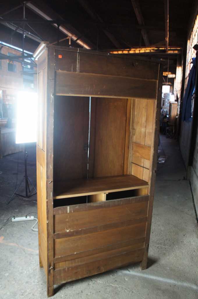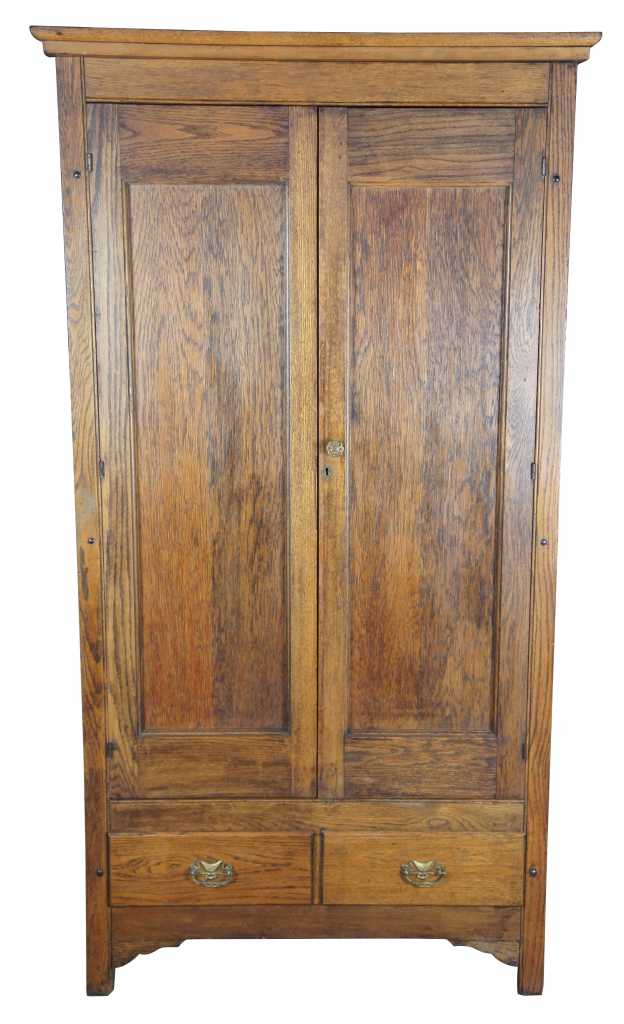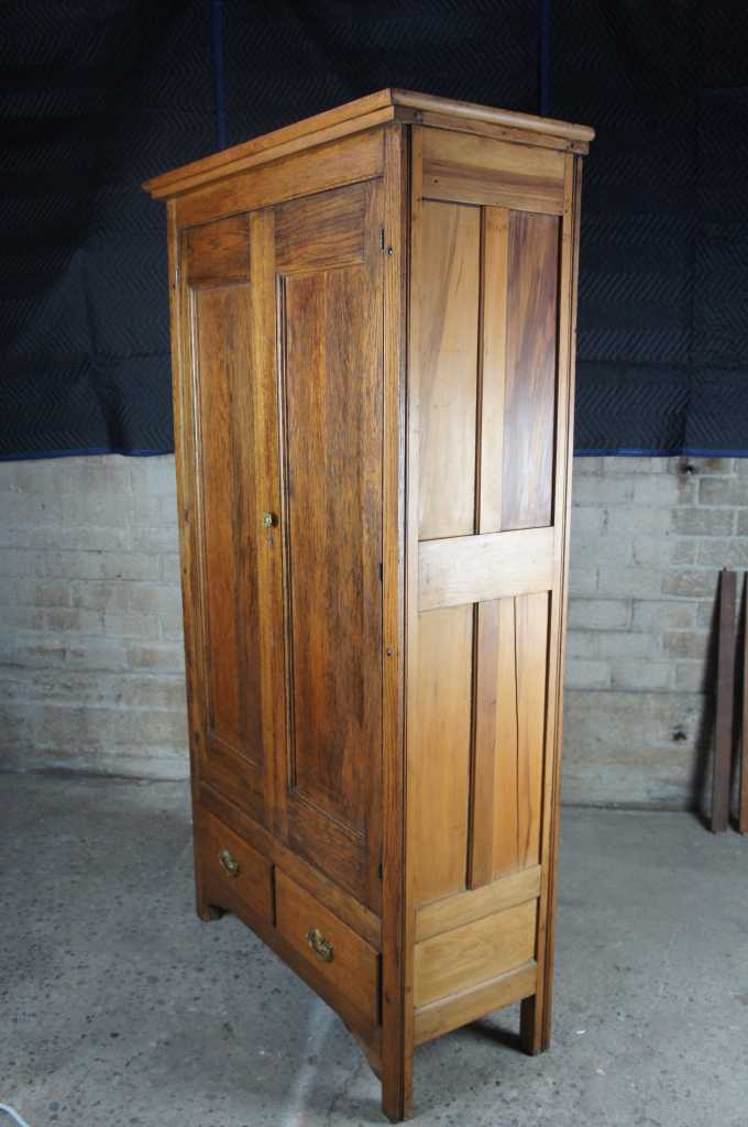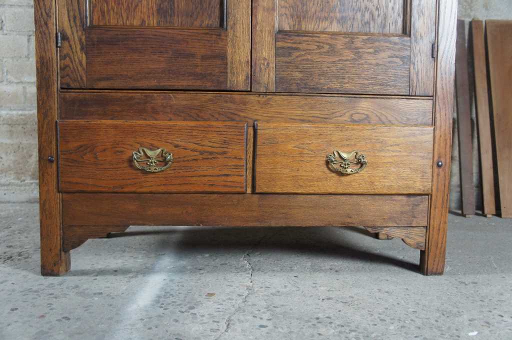 Late Victorian 19th Century oak knockdown armoire. This piece was converted for use as a TV cabinet but could be easily converted back to original use.