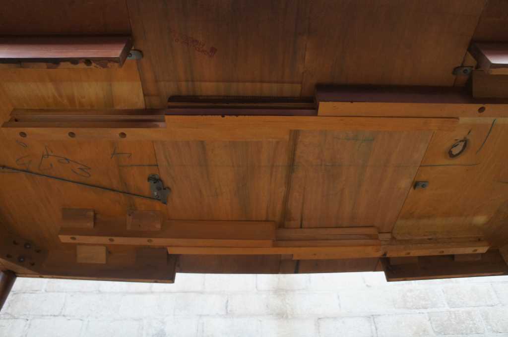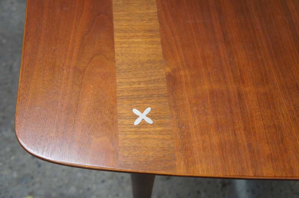 Very good, light distressing, wear and marking. the two leaves are slightly different color than table.
