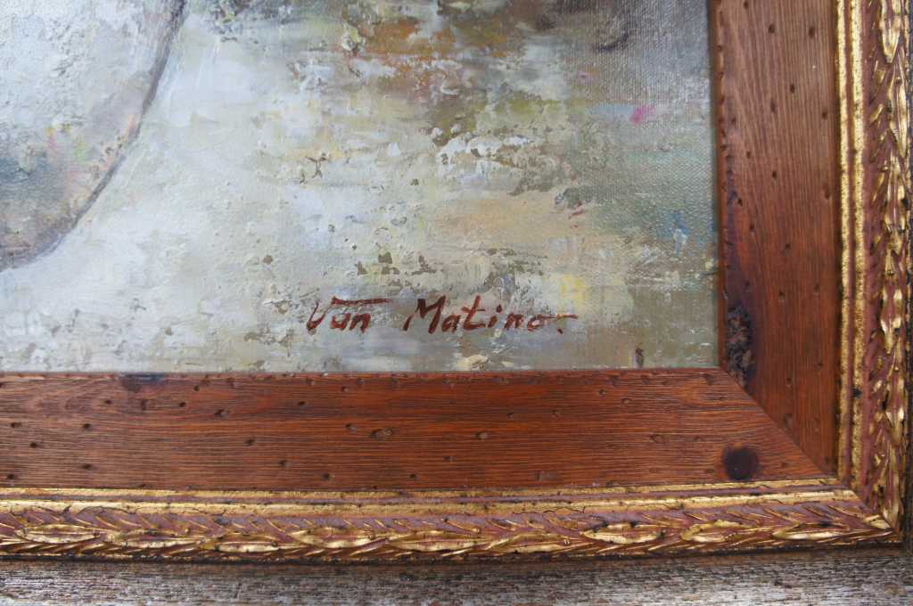"Van Matino still life, professionally framed in wood with pine matt acanthus molding and silver frame. Van Matino Ahn was born in Kyungbook, Korea in 1955. He was raised with an appreciation for nature and for simplicity. After graduating from Dong-Kook University with a degree in philosophy, Ahn strived to incorporate his heritage and education into his artwork. In the years following his graduation, Van Matino Ahn went on to receive the main prize for the Korean Arts Grand Exhibition in 1979 as well as the Golden Prize for the MBC Grand Art Exhibition in 1980. He also participated in the Exhibition of Mokwoo Artists of Korean Oil Paintings Association, the Five Korea-Japan Exchange Exhibition, and the Fine Arts Exhibition in Seoul, Korea. By the time he reached his early twenties Van Matino had become a solid member of local art exhibitions.