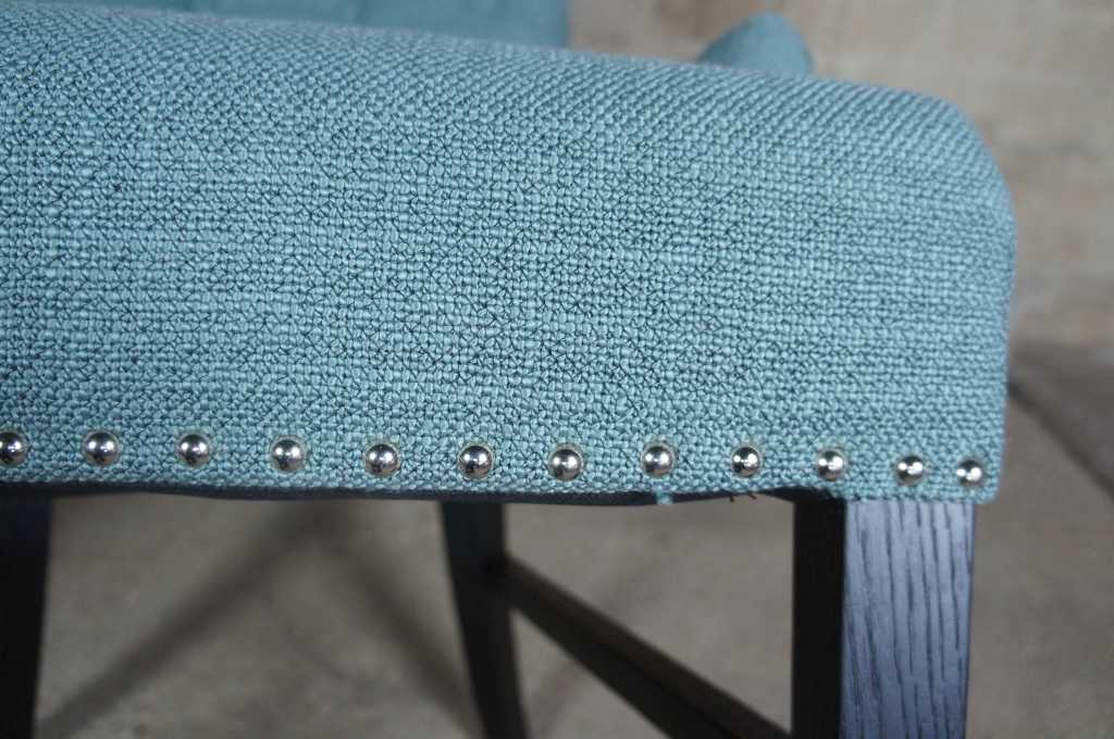 The transitional style of the Blue Claybourne Dining Chairs by Arhaus brings a classic charm to any dining space. Expertly upholstered in designer-inspired neutral fabrics, these chairs’ large silhouettes feature graceful curves accentuated by hand-tufted detailing and nailheads. Sumptuous seats are supported by generous padding and a no-sag spring systems that provide firm yet flexible comfort for hours.