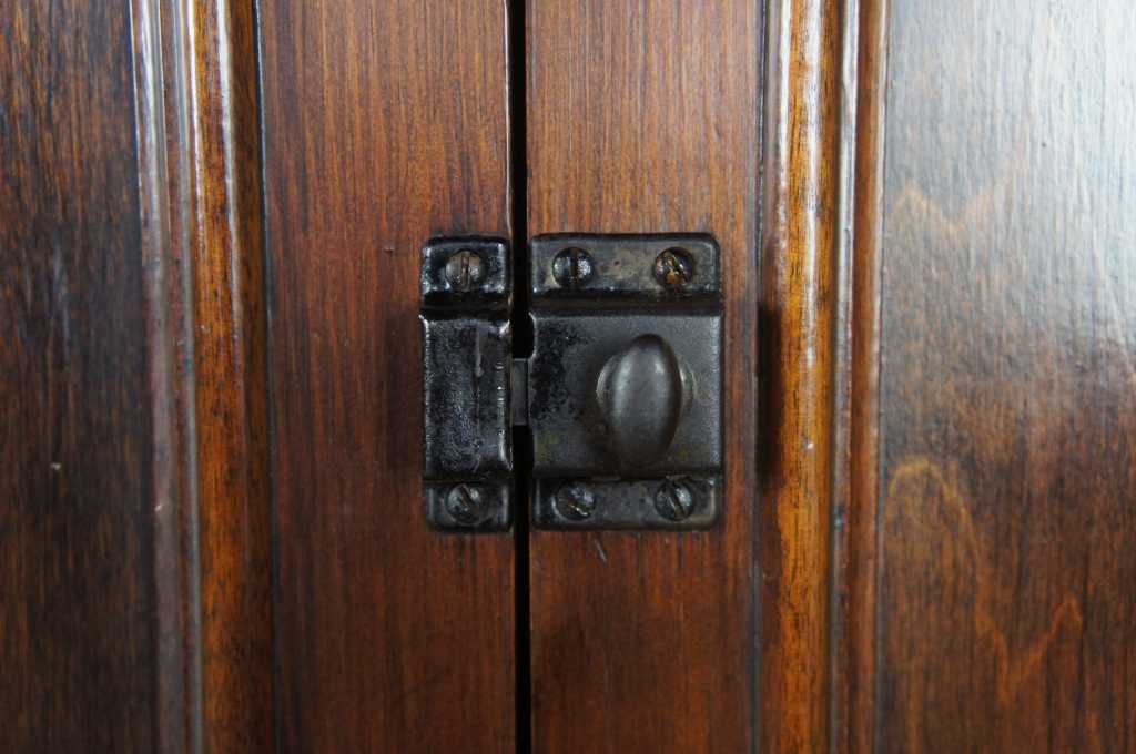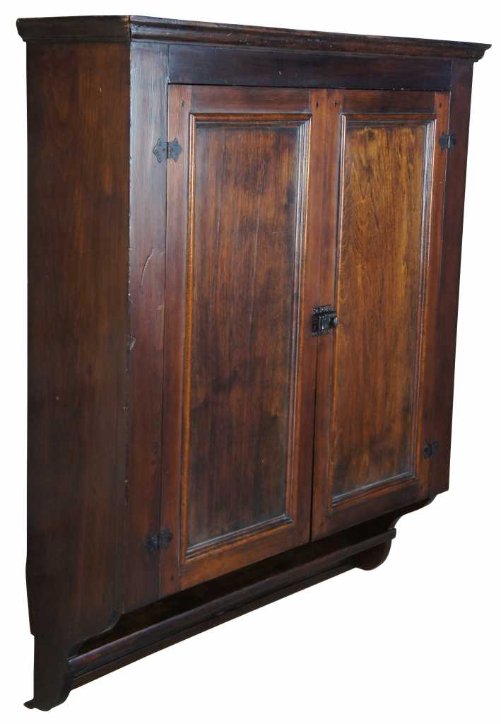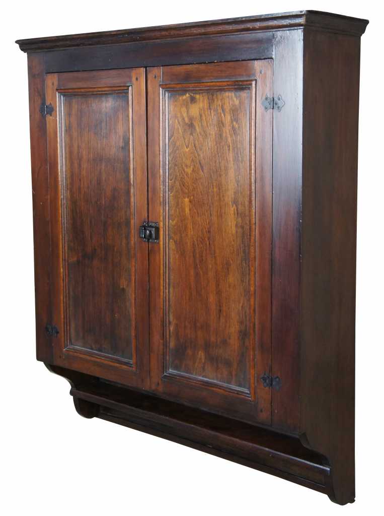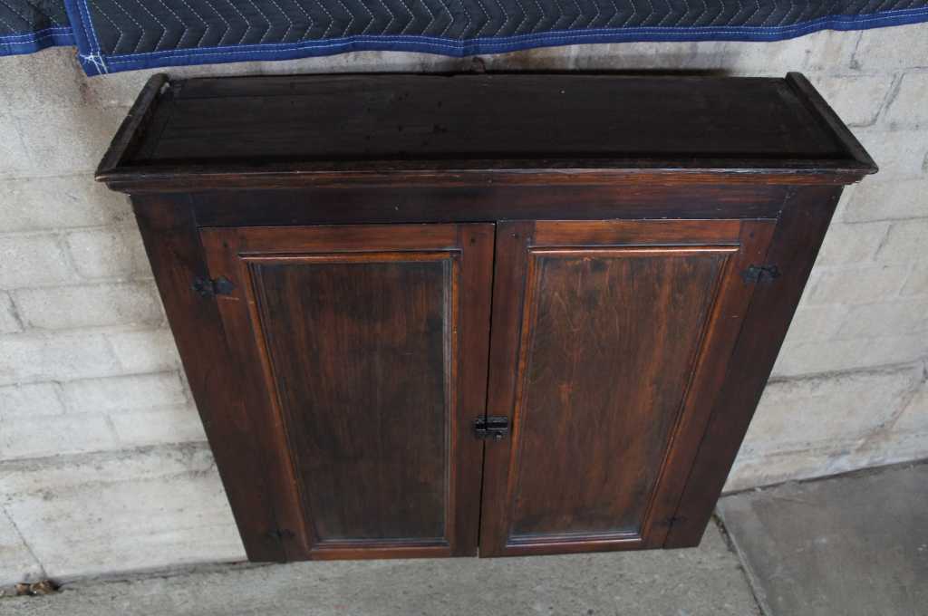 Early 20th century pine hanging cabinet or cupboard. Made in Toronto Canada. Features a slim profile, two latching doors, three interior shelves and lower exterior shelf. Perfect for any country setting or farmhouse.
