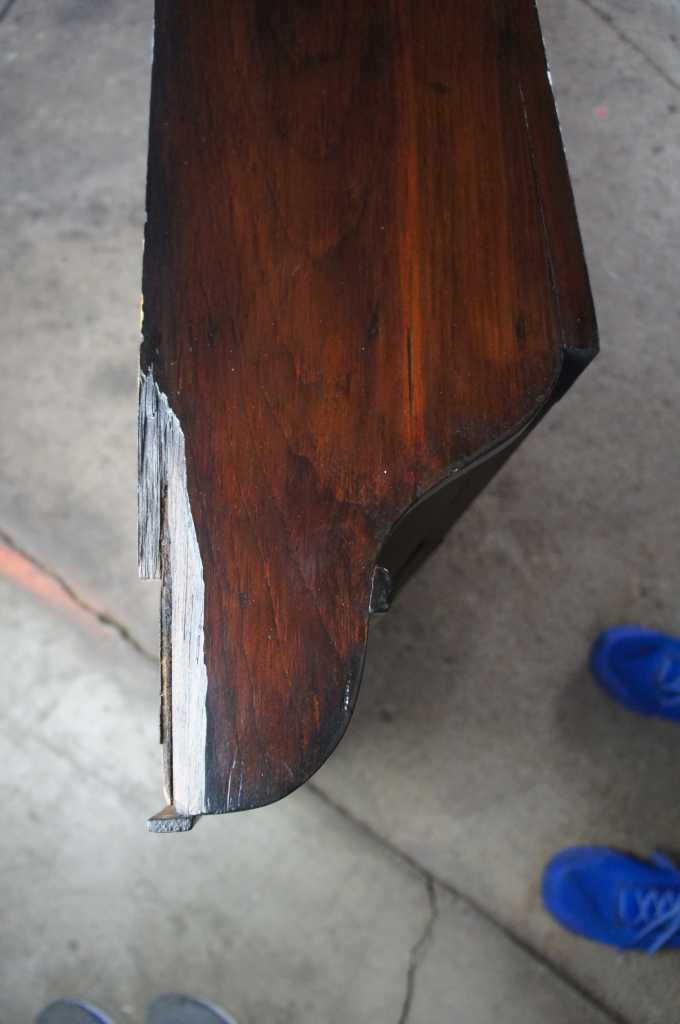 Good condition, distressing from use, damage to lower back left (can be repaired before shipping for $60)