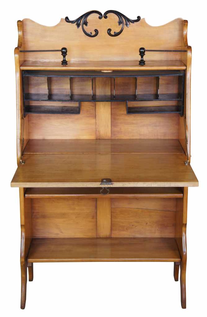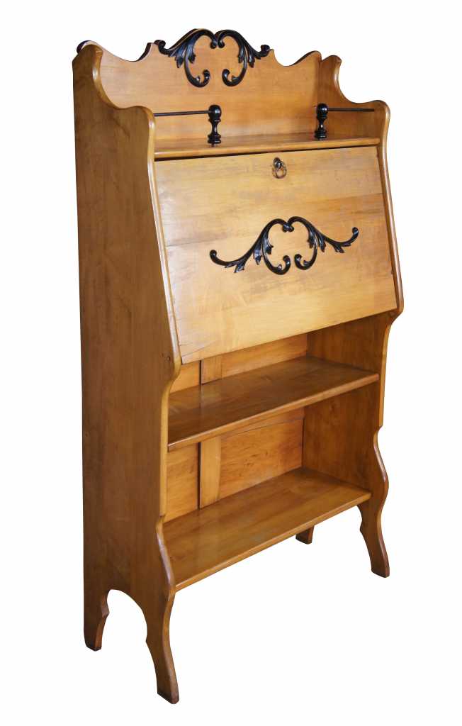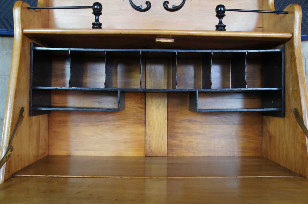 Turn of the century antique drop front secretary. Features shelves for books and cubbies along the inside. Arts and crafts / larkin style.