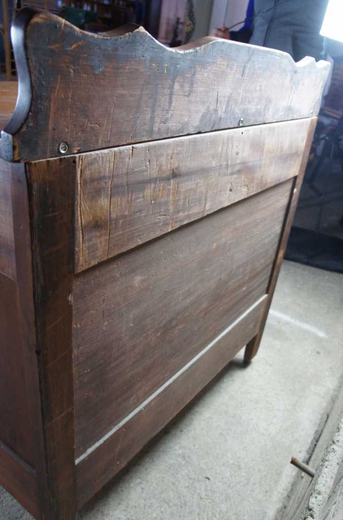 Good antique condition, distressing marks, veneer wear to edges, rings and staining to top, front left leg repaired in past. – See pictures