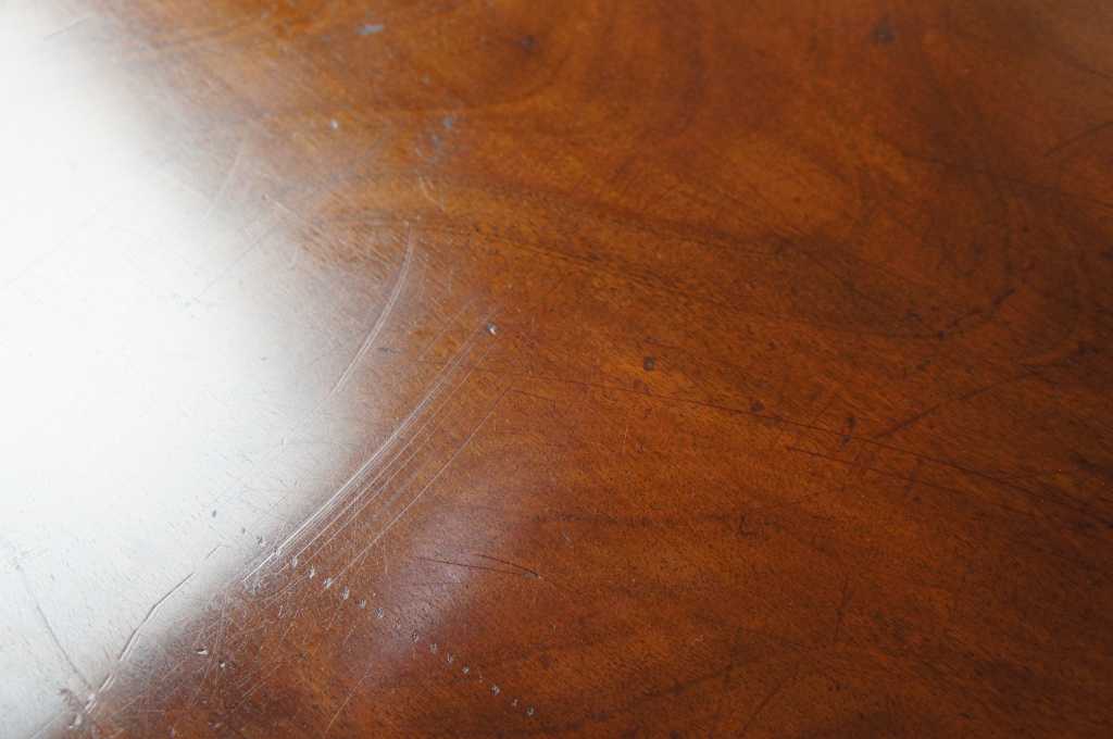 Very good overall, scratching / finish loss /distressing to top, wear to feet; top can be refinished for $250 before shipment if interested