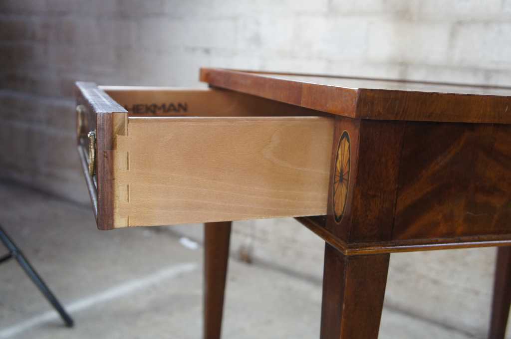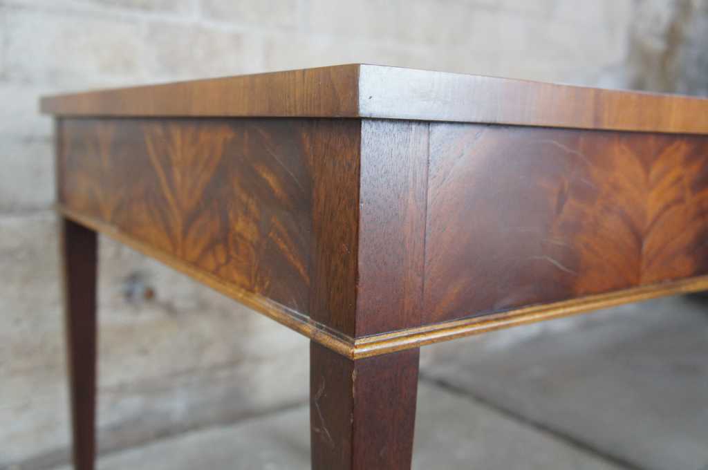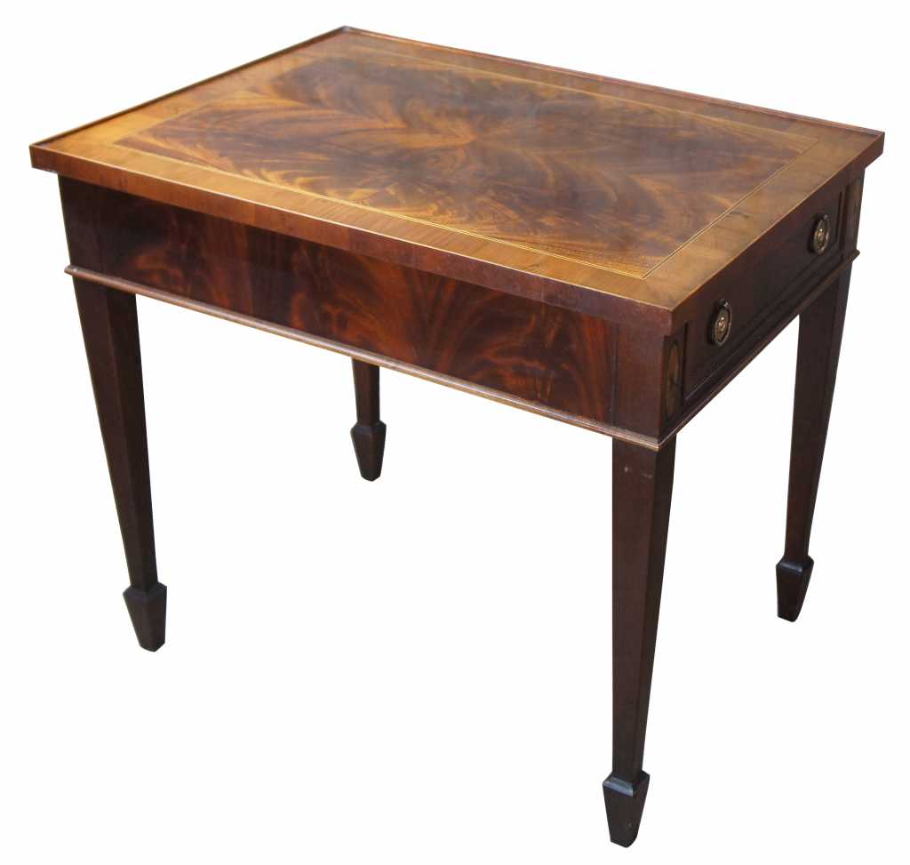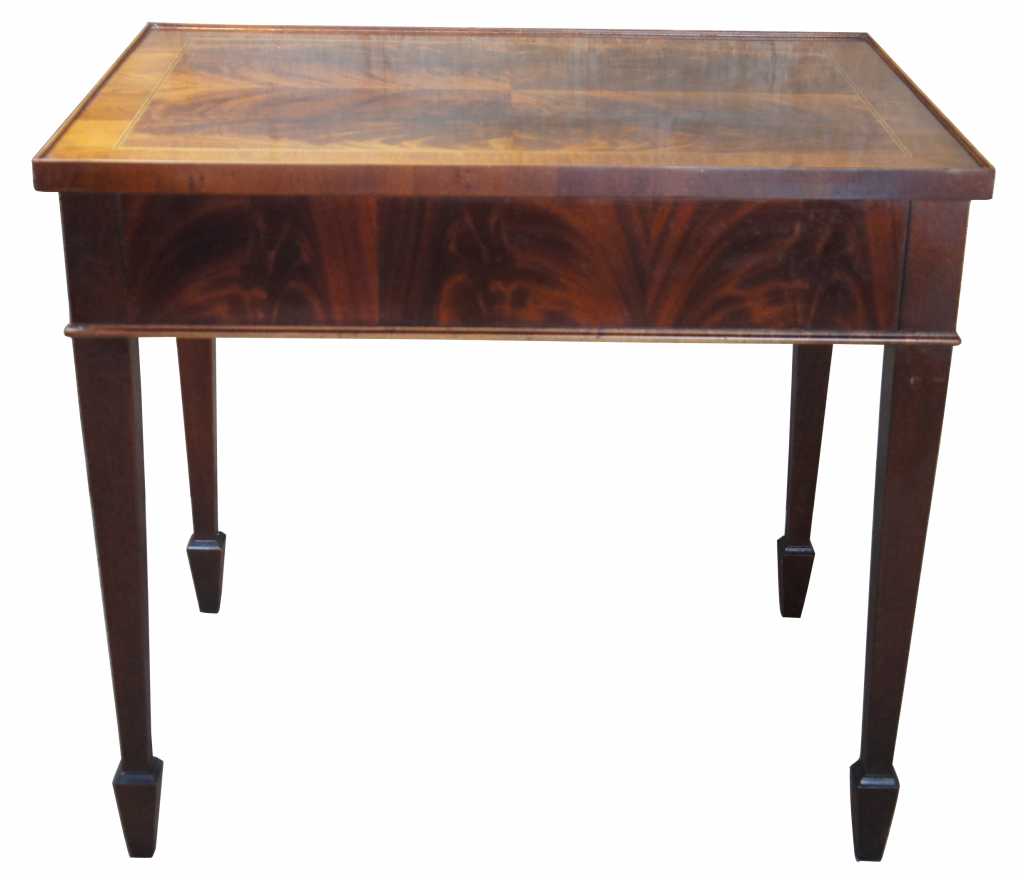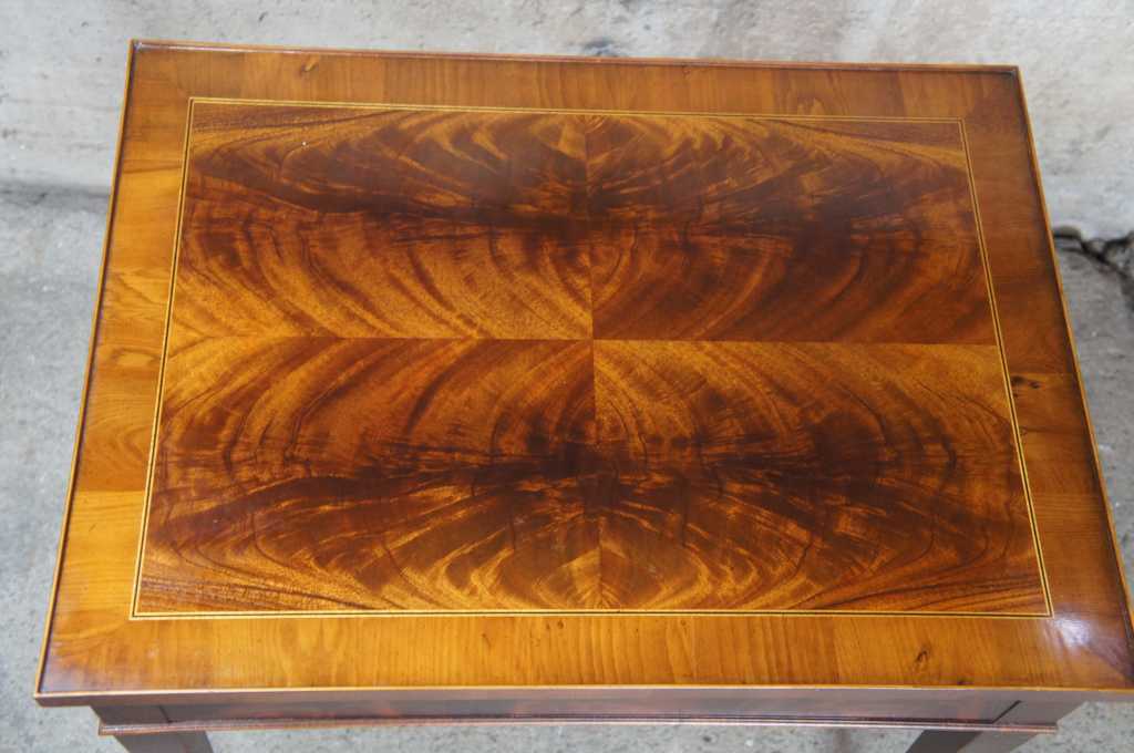 Yewood border on top with swirl mahogany inset on top and drawer front