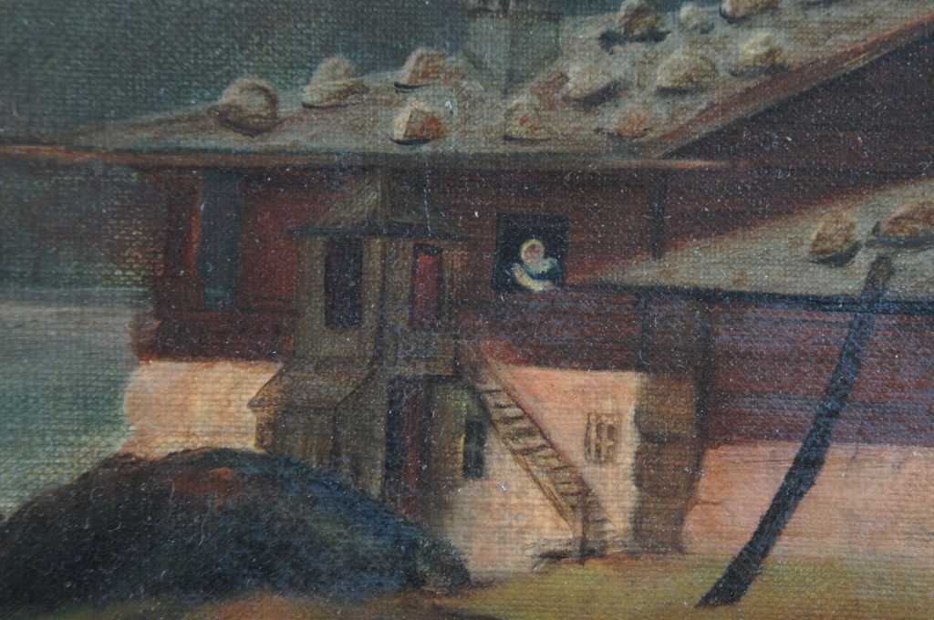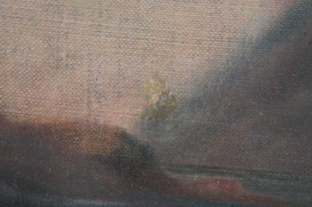 Very Good – One patch in canvas; couple small dings in paint; chips to frame; see pictures