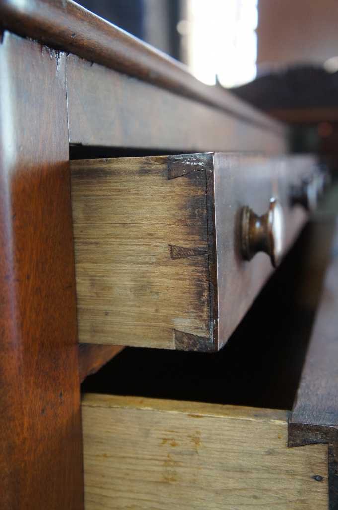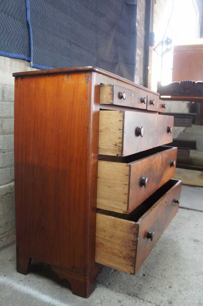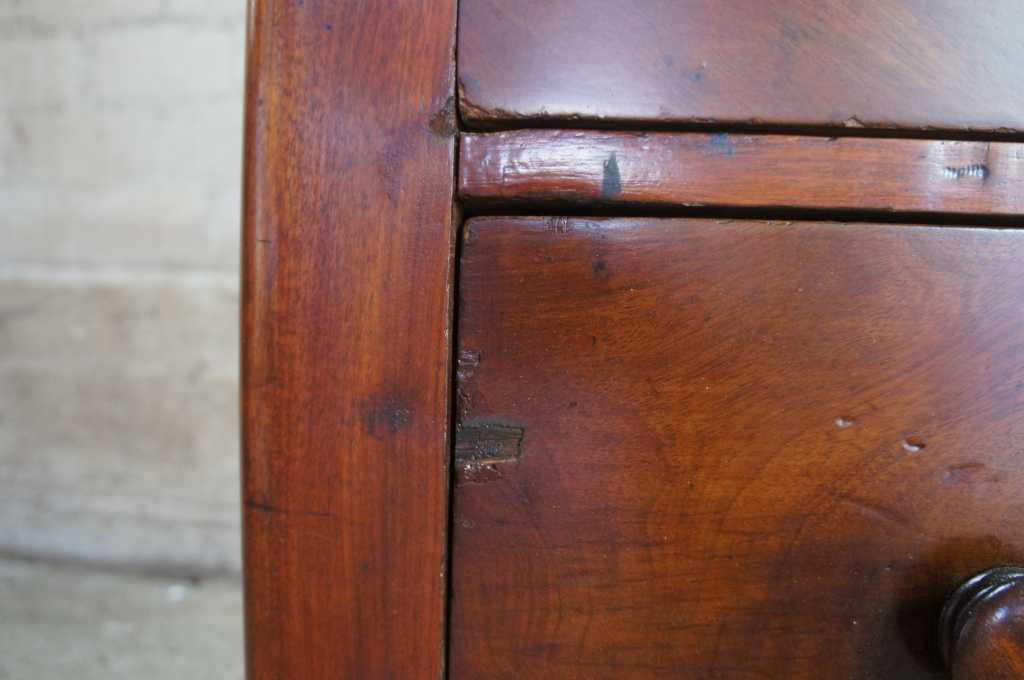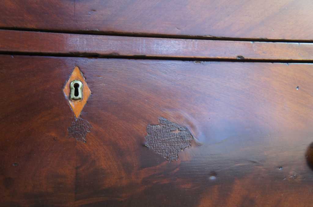 Very good, distressing and marks, veneer chipping, keyholes/locks no longer functional, lower right pull slightly smaller than rest.