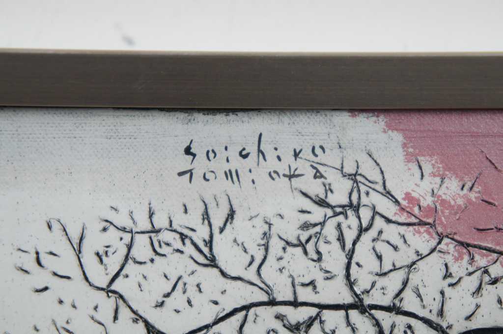 Soichiro Tomioka (Japanese, 1922-1994) was an abstract Japanese painter of the twentieth century, born in 1922 in Takada city in Niigata Prefecture. The artist specialized in the world of black and white consistently used a paint he developed, called Tomioka White, to paint the snowy lands of both Japan and international locales.