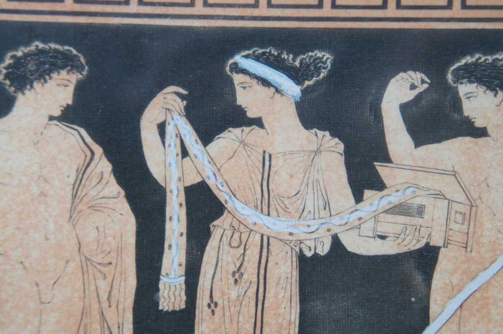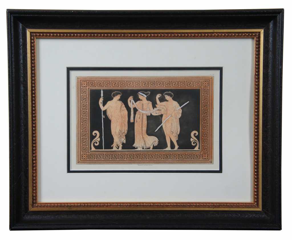 Vases from the Collection of Sir Henry Englefield was published in London in 1820. These beautiful prints of ancient Etruscan vases were drawn & engraved by Henry Moses. Featuring figures, ornate details and greek key motif. Sir Henry Charles Englefield, a prominent writer and collector of antiquities, was an active member of the Society of Antiquaries & the Dilettanti Society. & Etruscan Vases 1820