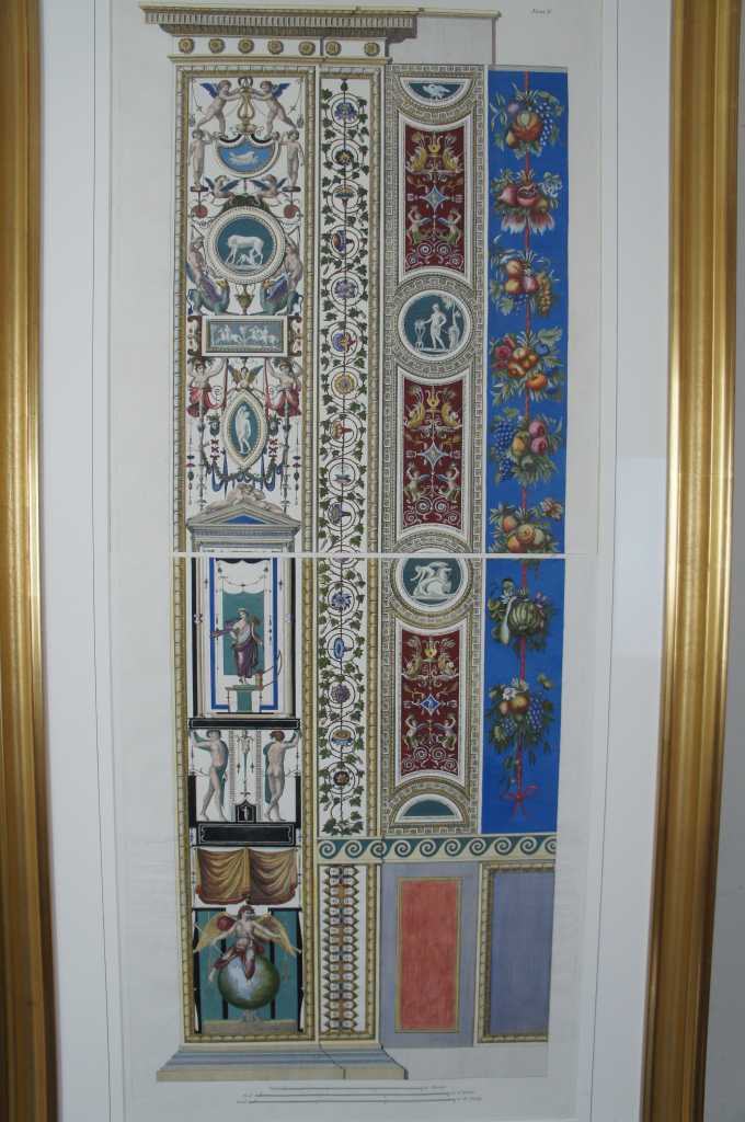 These magnificent eighteenth century hand coloured engravings by Giovanni Ottaviani after drawings by Pietro Camporesi and Gaetano Savorelli are direct renderings of the early sixteenth century grotesque decorations adorning the walls of the Loggie di Raffaelo in the Vatican Palace, Rome. Raphael (1483-1528)