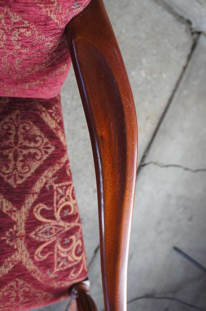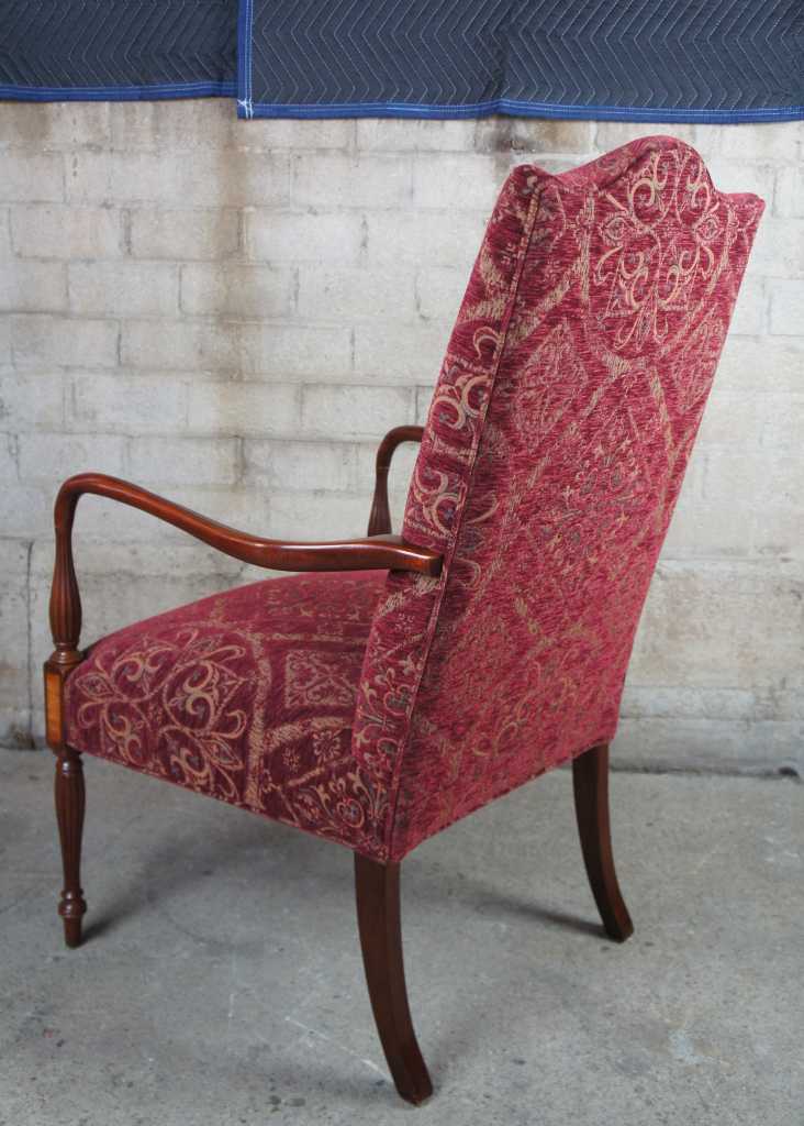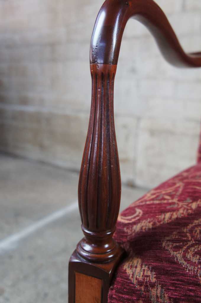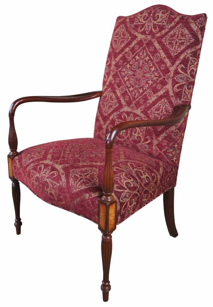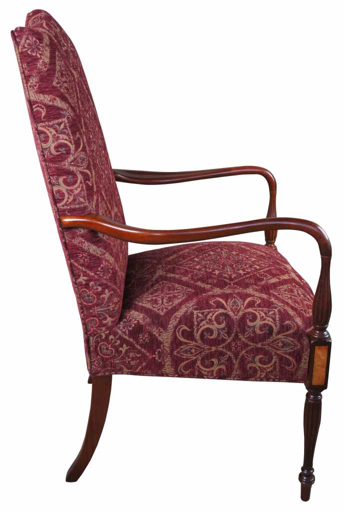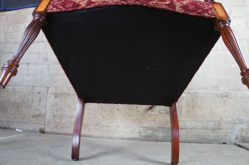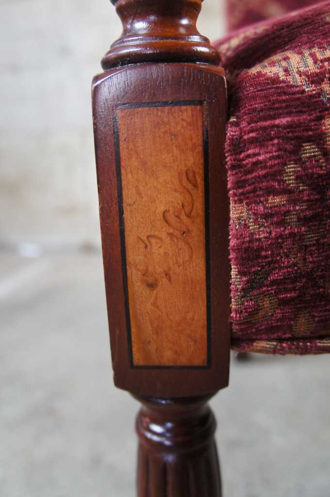 Attractive federal style mahogany lolling chair, also referred to as a Martha Washington chair. Made from mahogany with maple inlay.