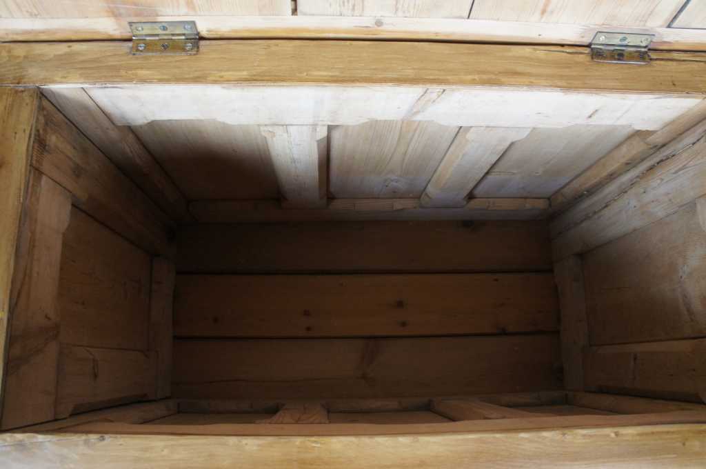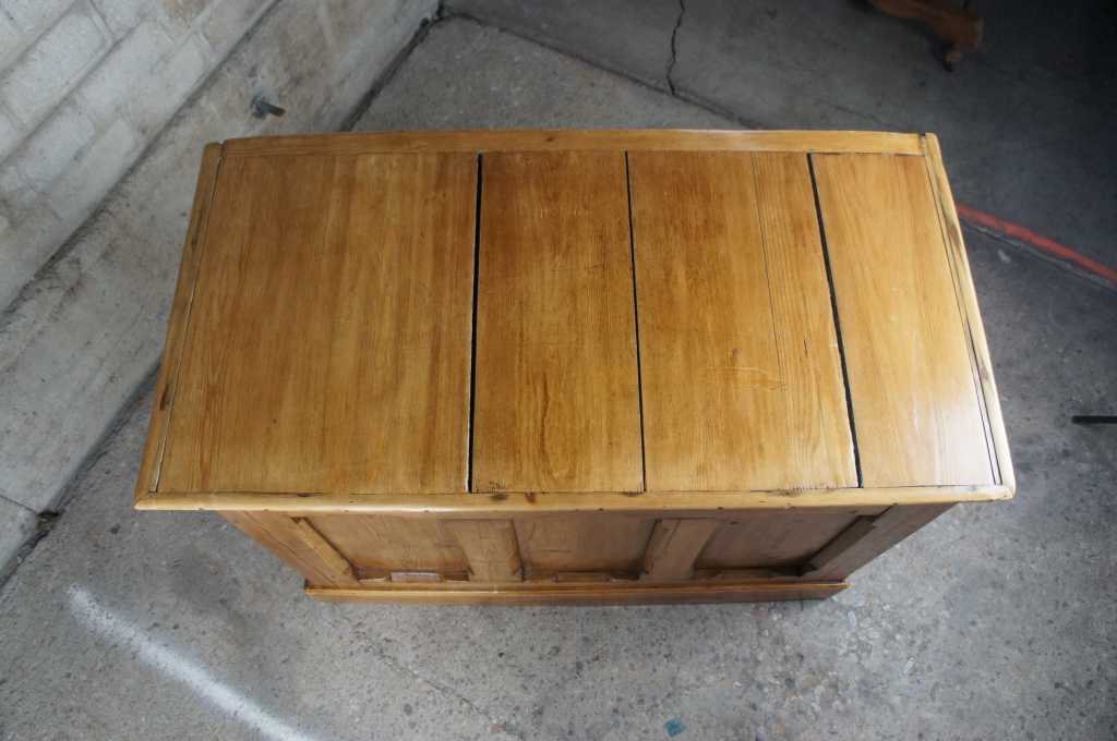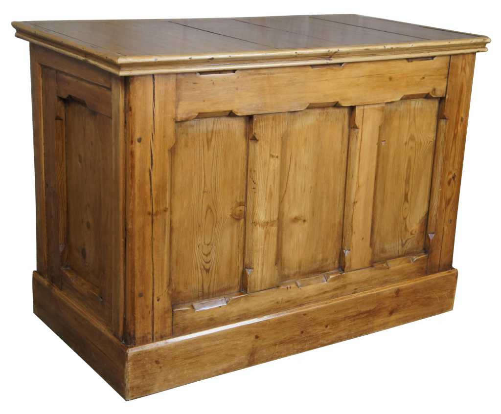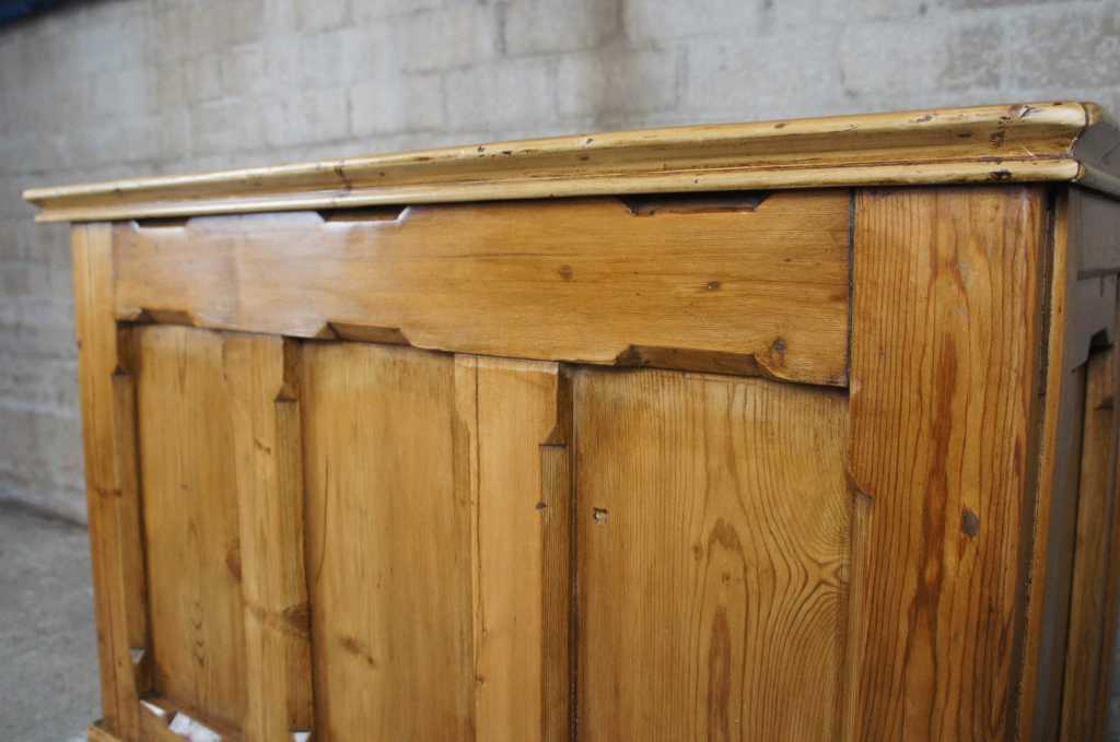 20th century pine storage chest, nice and tall with an old world vibe. Features paneling, soft edges and yellow pine. Very strong and sturdy, opens and closes nicely.