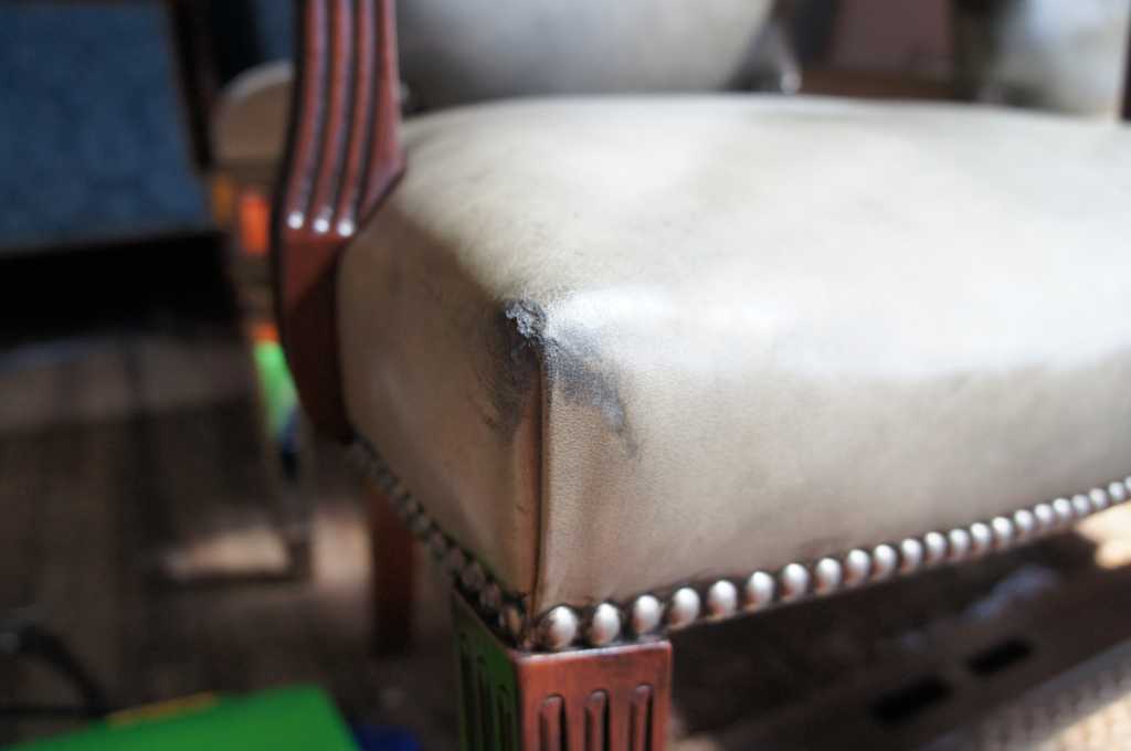 Good condition, wear / distressing and blemishing to leather. Front corner on one seat worn through.