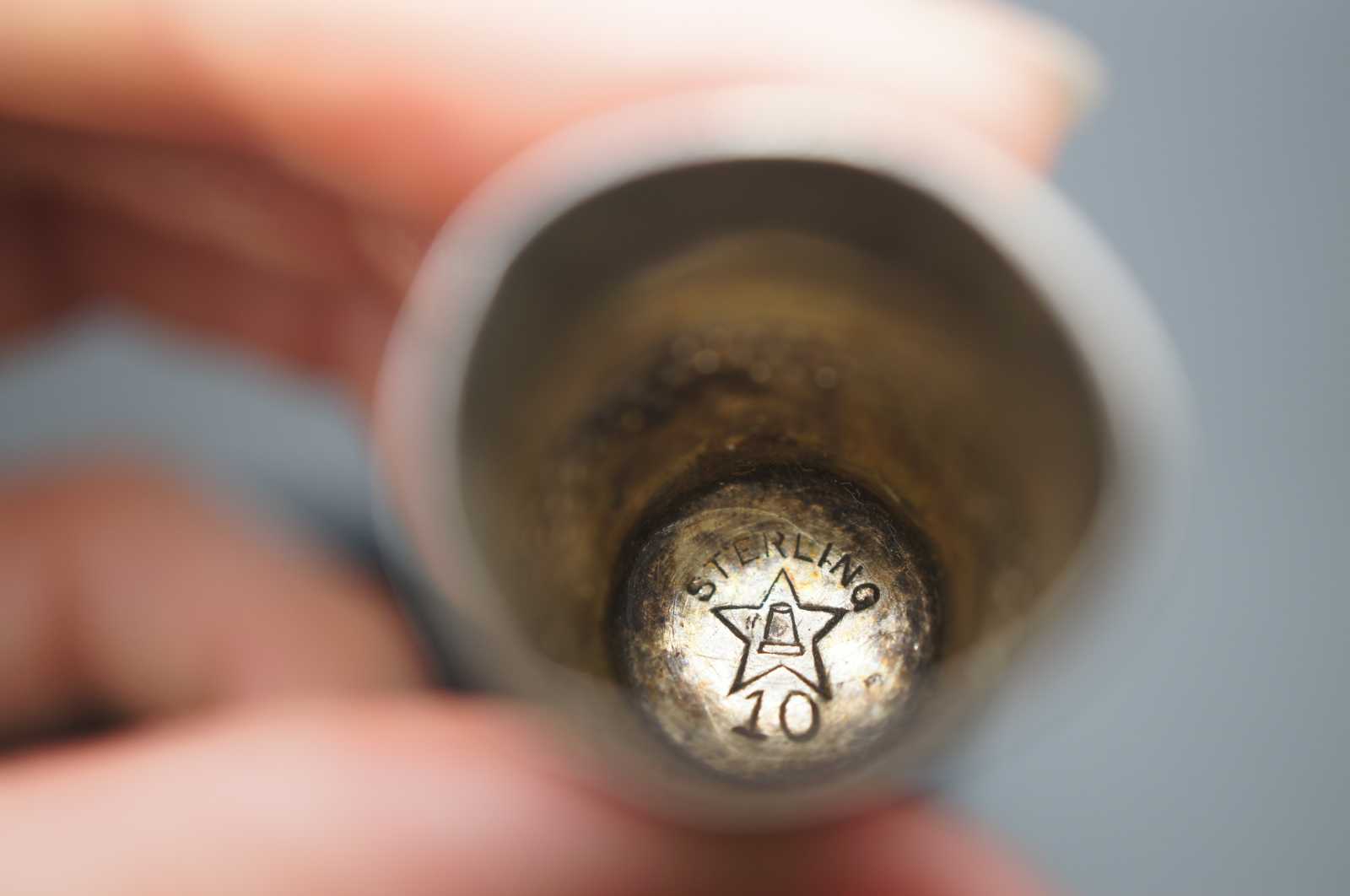 Antique Sterling Silver .925 timble made by the Waite, Thresher Co in the late 19th century. Features a star and a thimble. Waite, Thresher Co was founded in Providence, Rhode island, 1884 - 1928. Manufactureres of silver and gold thimbles. Originally founded by Daniel Waite in 1860 as DW Waite & Co. Henry Thresher became a partner in 1884. Simons Brothers acquired their deisngs when the firm disolved. First mark was a star, the thimble in its interior was added later. Successor to the Waite, Smith & Co.