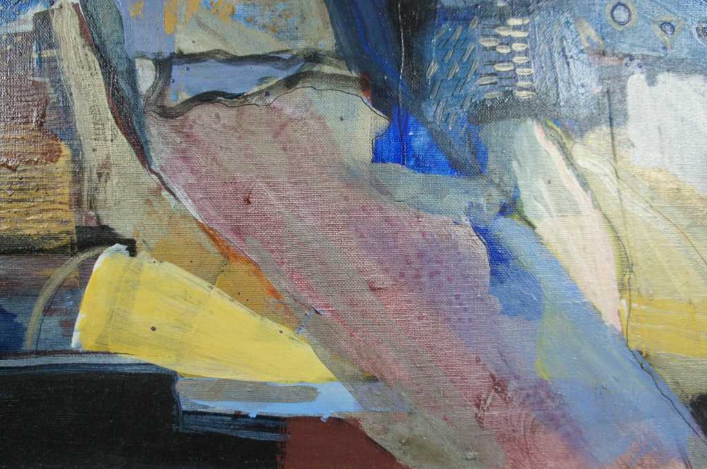 A beautiful expressionist portrait titled "Blue Sleeves". Singed on the reverse with artist signature, January 1986.