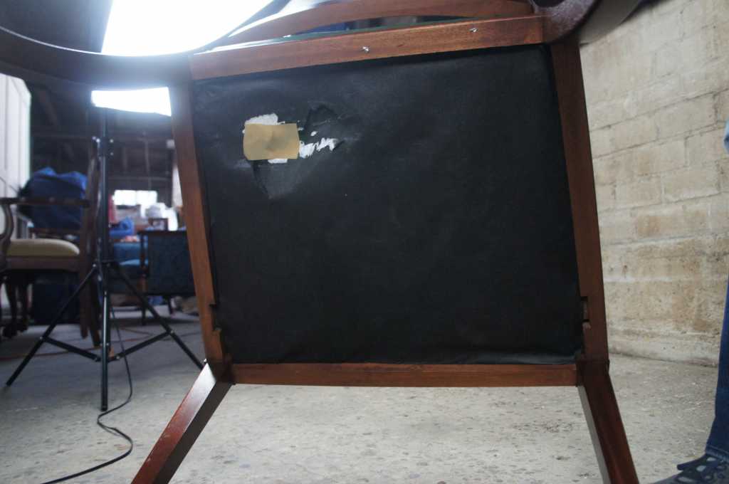 Good vintage condition, scratch to backside leather, pock mark on seat, some blemmishes, scratching and distressing.