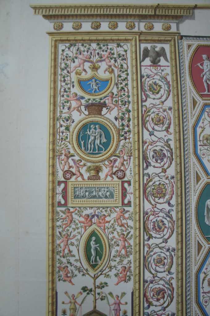 These magnificent eighteenth century hand coloured engravings by Giovanni Ottaviani after drawings by Pietro Camporesi and Gaetano Savorelli are direct renderings of the early sixteenth century grotesque decorations adorning the walls of the Loggie di Raffaelo in the Vatican Palace, Rome. Raphael (1483-1528)