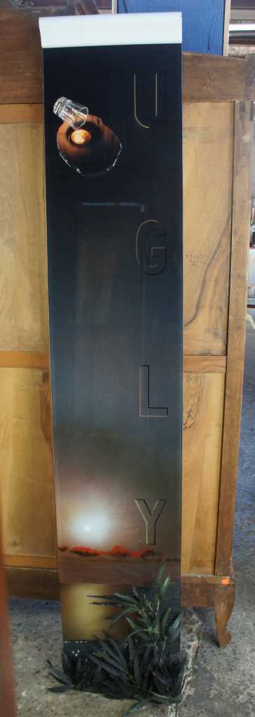 Ugly by Dike Blair, b.1952 USA. Made in 1987, Resin over digital print, glass, painted wood and fake foliage