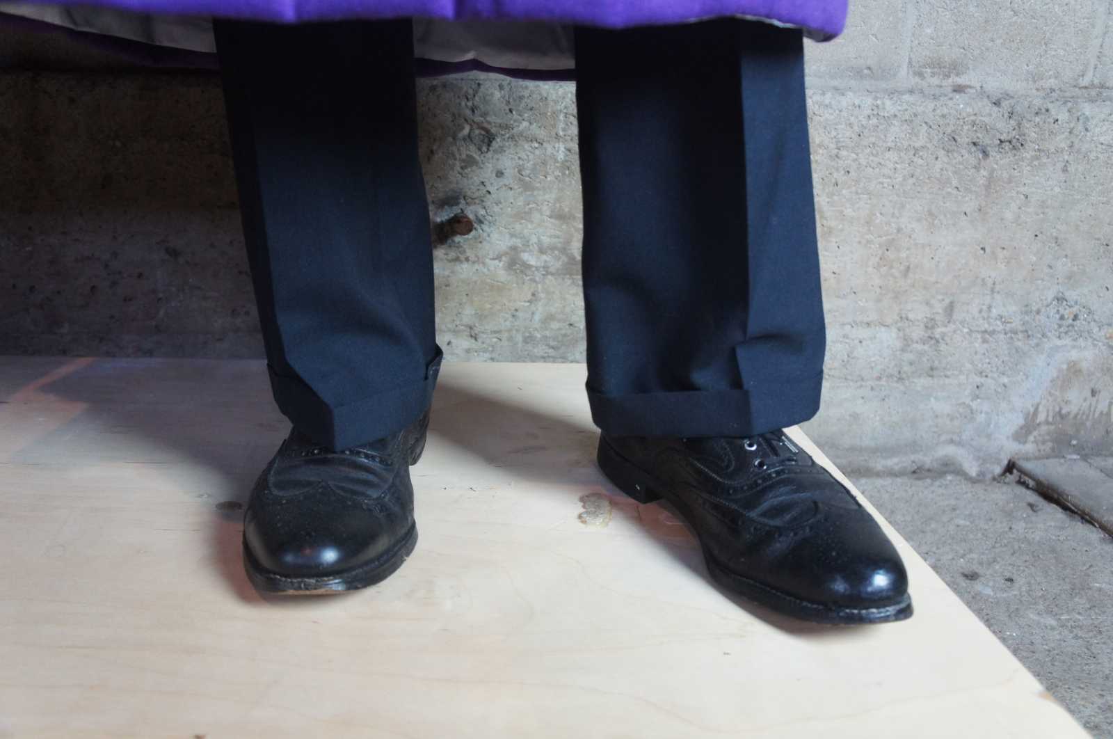 Claude Simard (b.1956 - 2014) Emphasis on shoes ... Claude Simard's "Shrouds" have only their shoes to identify them. The exhibit is meant to be installed on a wall. As an artist, his works and performances have been presented in the United States, Europe, Canada and Australia. He is included in the permanent collections of the Solomon R. Guggenheim Museum, New York, the Akron Art Museum, Ohio, the Museum of Fine Arts in Montreal, and the Musee d’Art Contemporain de Montreal, among others.