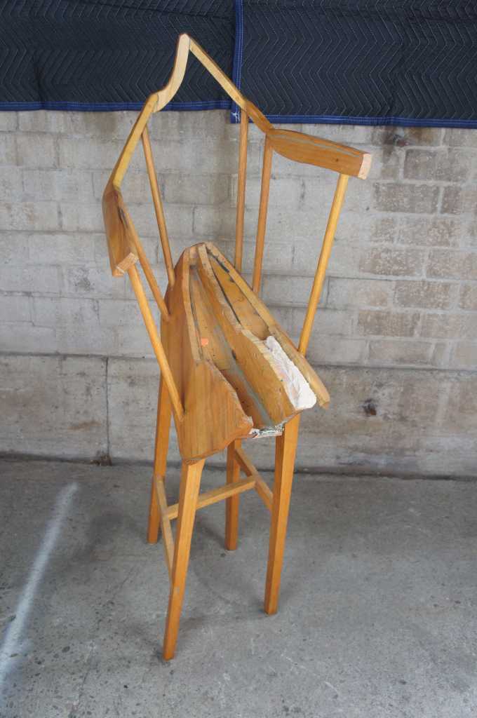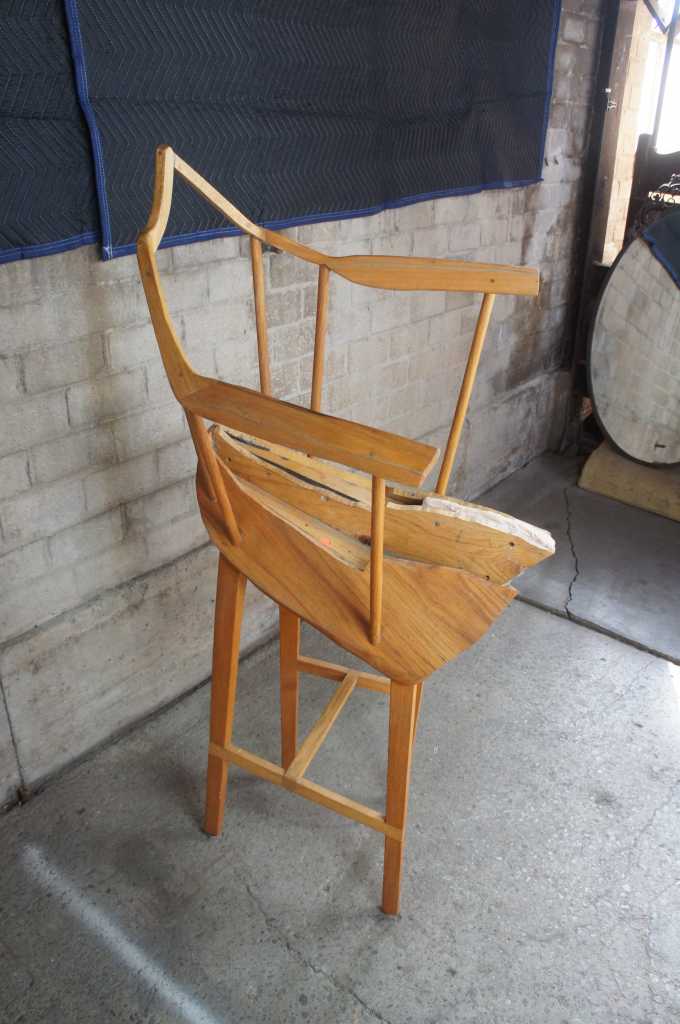 Yet his chair has been appreciated, as has Giebink’s desire to create pieces which seem both fantastic and functional. He talks about the countless hours over five months spent trying to make the off-kilter chairs rock correctly, the sanding and shaving of each piece, the splines and dowels holding it together. It’s not a chair as we know it, but the basis of construction is there.