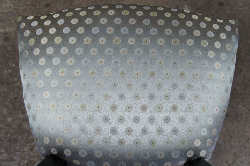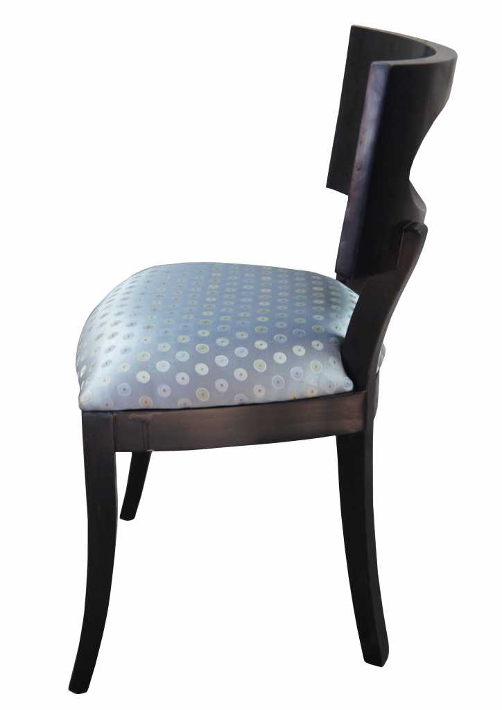 A neat piece for any modern or traditional setting. Finished in black with a silk polka dot upholstered seat and bentwood back with oval pierced design.