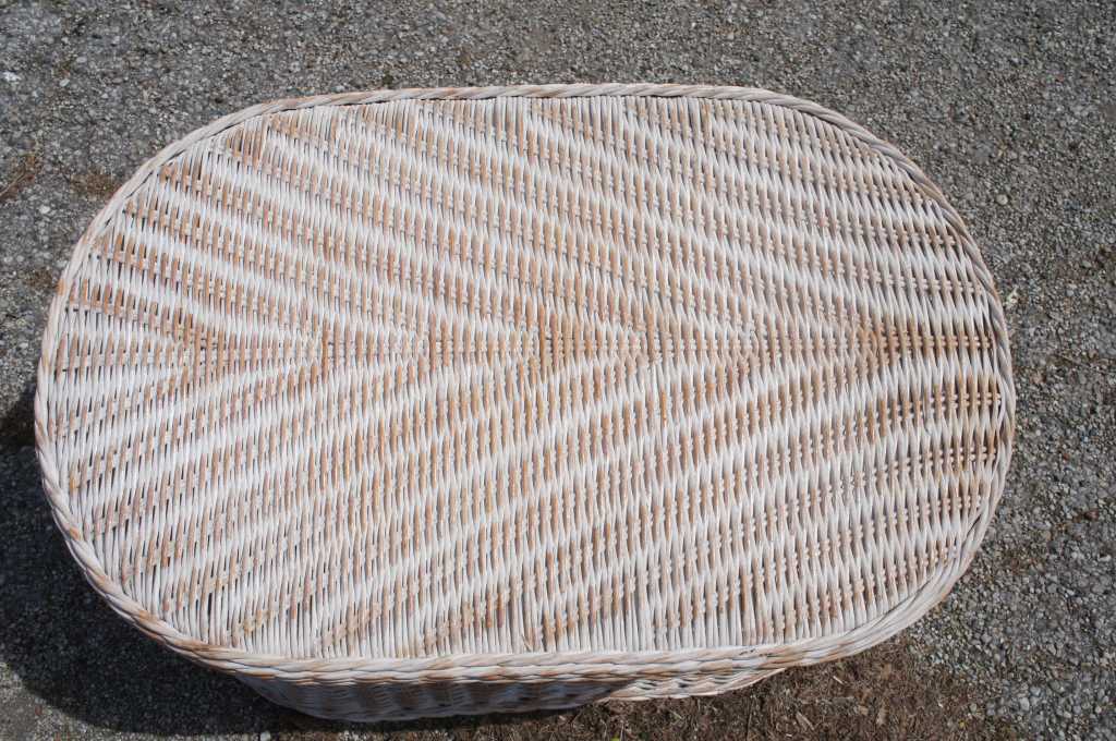 Antique coffee table, ovular in shape with skirt and herringbone design.