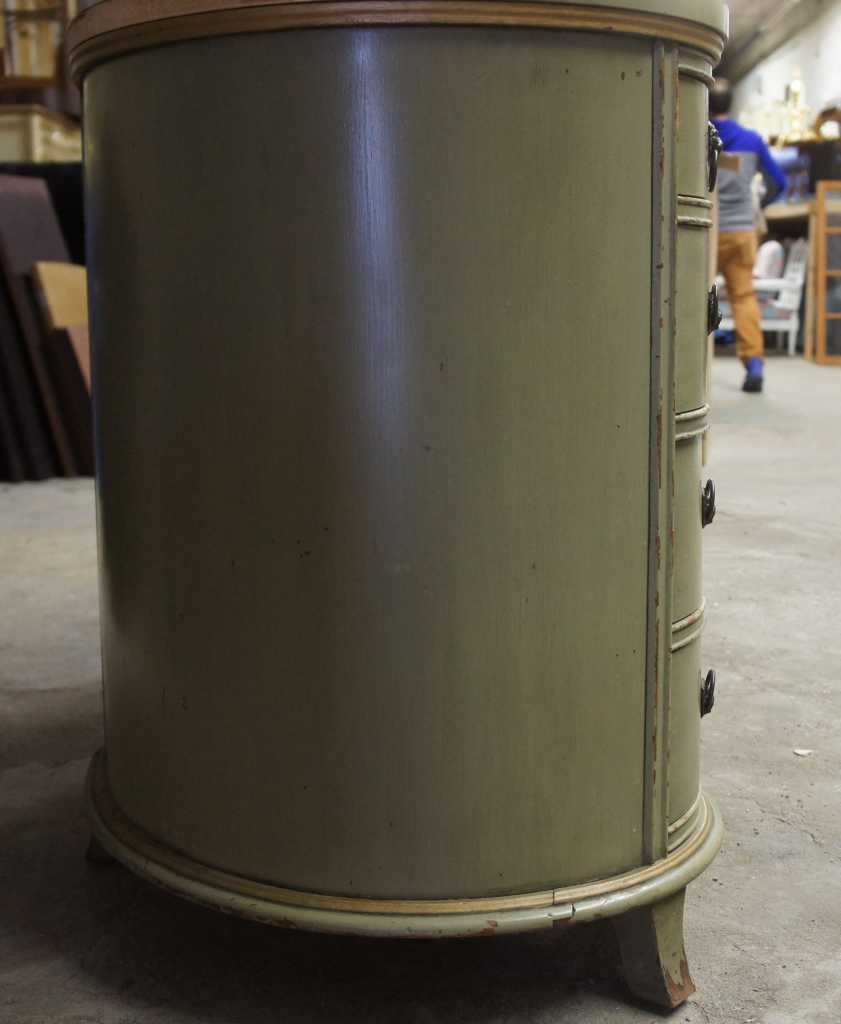 Good antique condition, light wear and distressing from age and use. In the photos, the lion head knockers on the bottom six drawers were facing upwards. These hang down like the top ones.